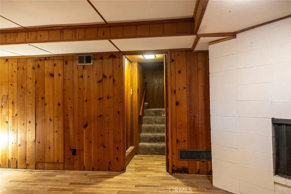 5 steps down from entry way, you will find a Large storage closet. Continue down the stairs to a very large bedroom with its own fireplace, a ¾ bathroom, laundry room, and a versatile bonus room ideal for crafting, a home office, or whatever suits your needs. A door on this level provides access outside to the back of the home, with additional storage located behind the house.