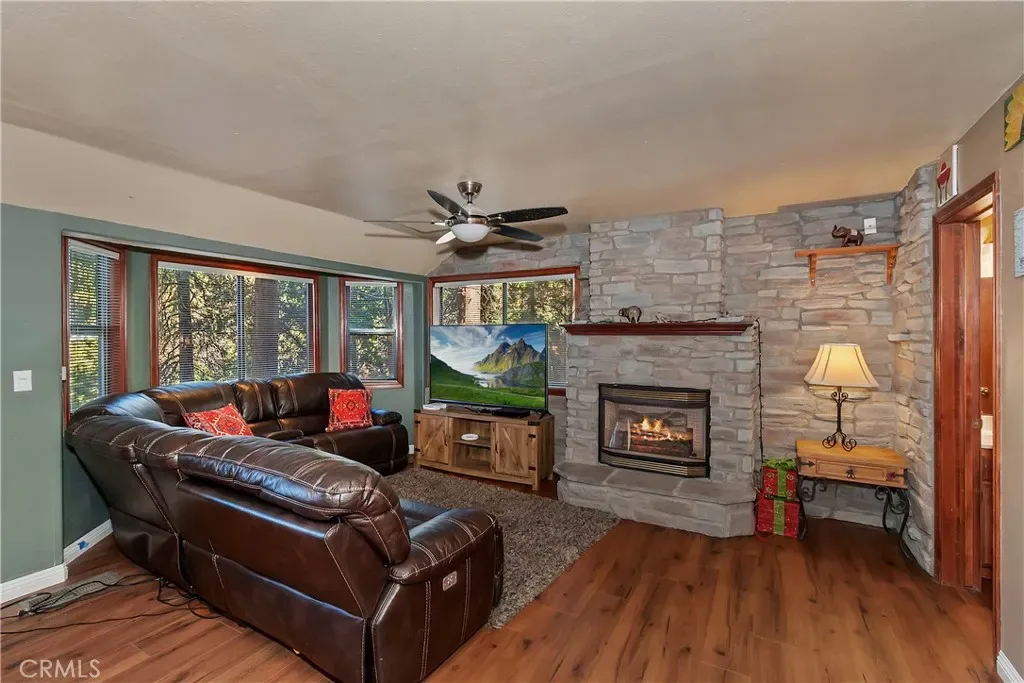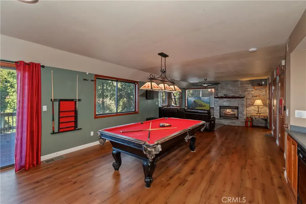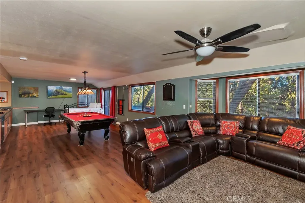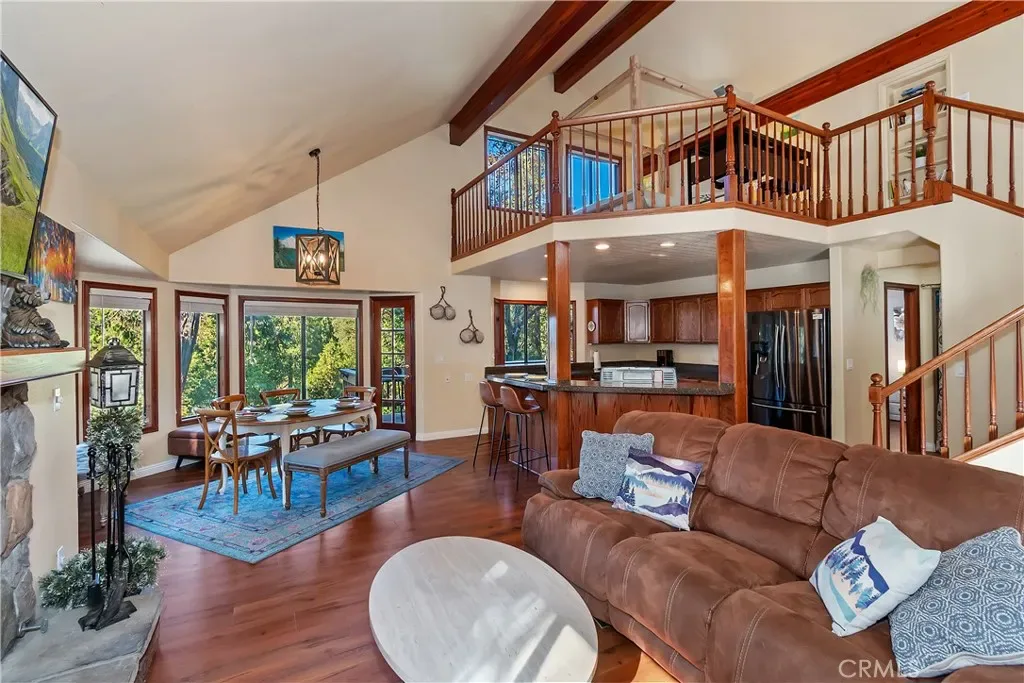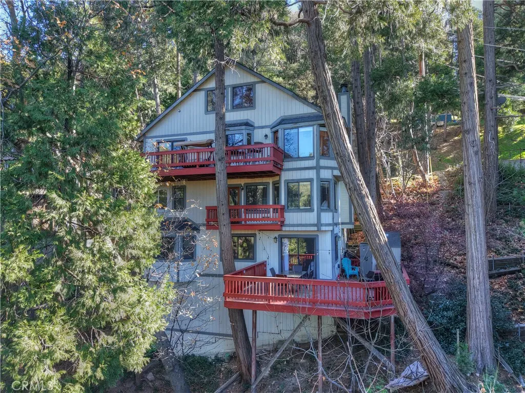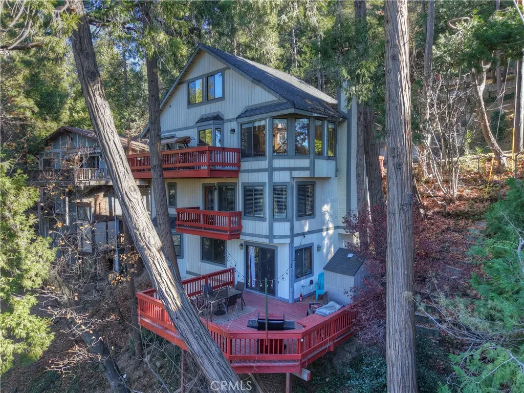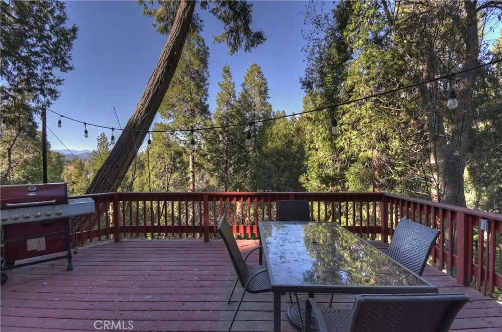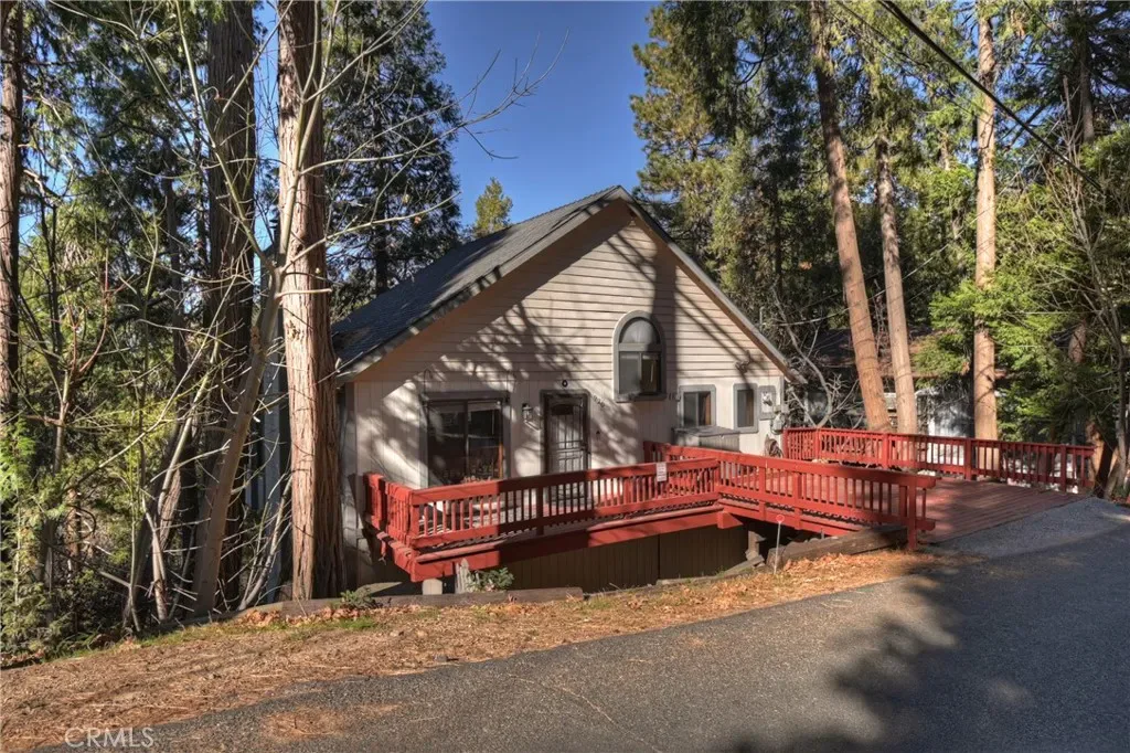 Wonderful Mountain home close to Lake Gregory for all sorts of summer fun and glorious walks on the trail. Enjoy fishing, kayaking, paddle-boarding and the water park & beach, too. This lovely home starts off with hugely important “Level-entry” AND “Level-parking” AND bedroom& bath on the main floor! Great room design for everyone’s favorite “open floor” plan. Living area opens to outdoor living space with forested views in every direction. Updated Master bedroom with fireplace a newer spa-bath is terriffic and wait till you check out the lower level, now set up as a billards room (could be a theatre room, could be 2 more bedrooms or ??. This level opens to expanded deck for more outdoor space and those mountain views. This property is being offered “turn key”, all furnished & decorated… just move right in! AND seller is including plans for an additional living space for a 600sq’ ADU. This is such a nice package & simply can’t be beat and only $235/sq’!