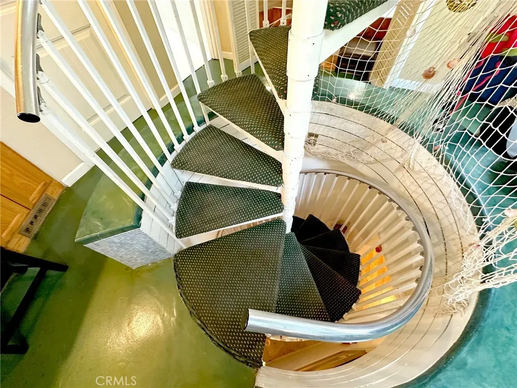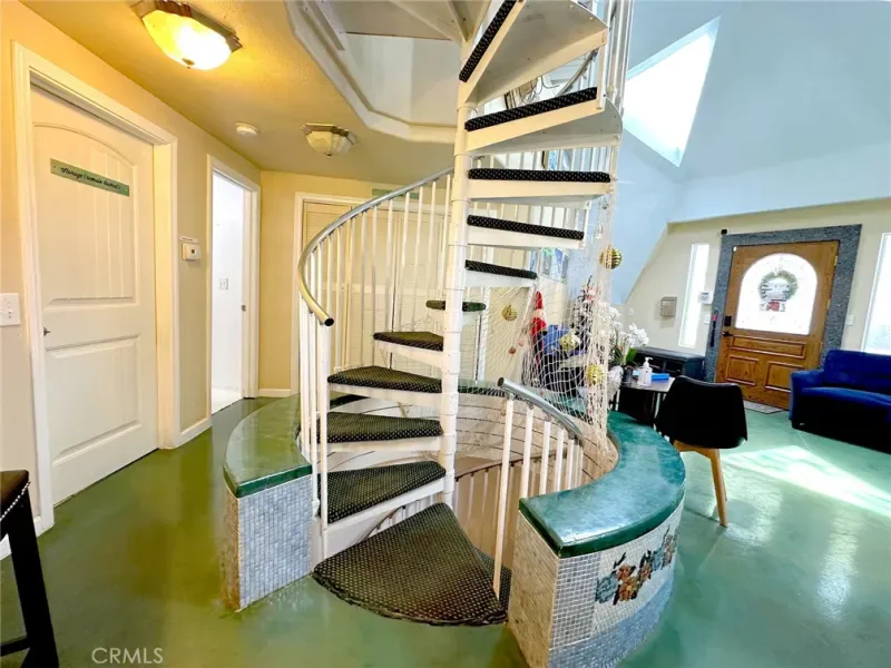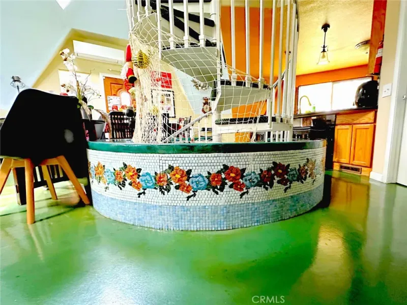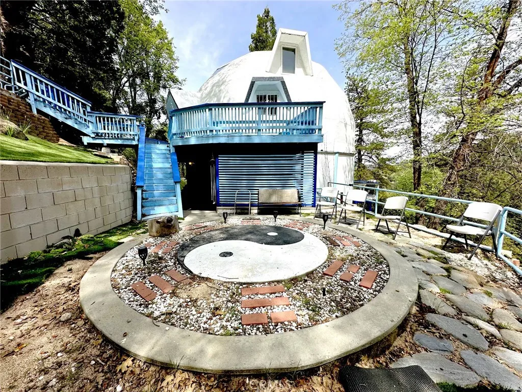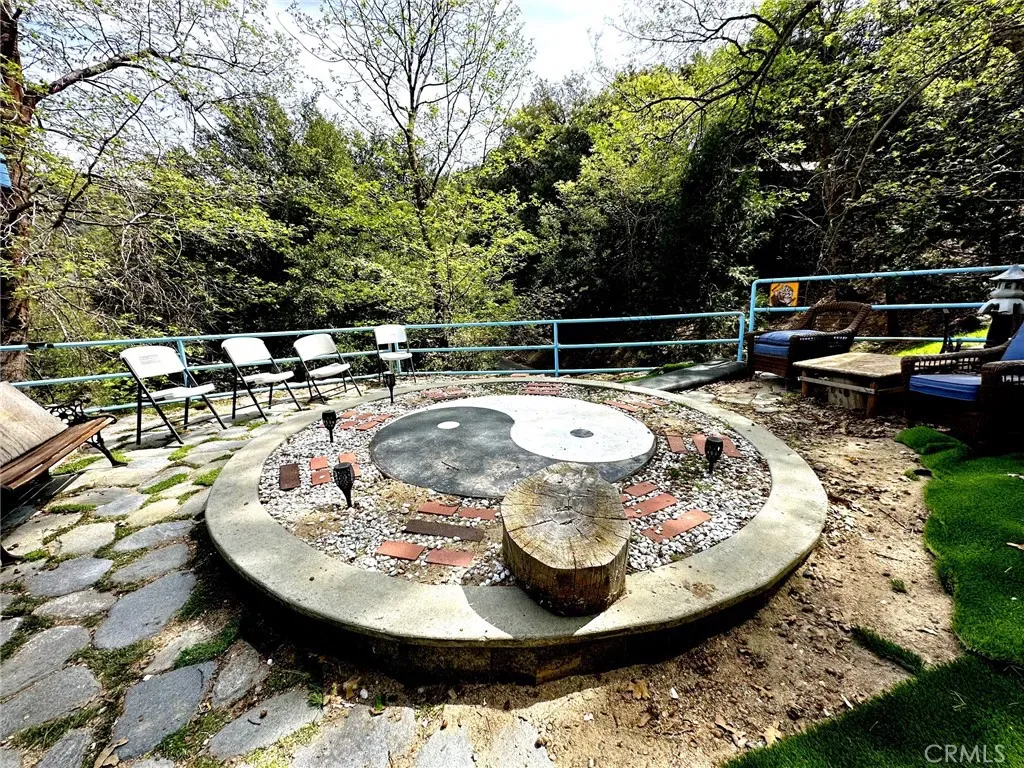 Convenience meets functionality with a dedicated laundry room offering ample shelving and storage. Step outside to discover a unique Yin Yang patio, an inviting space for meditation, gatherings, or simply enjoying the peaceful surroundings.
