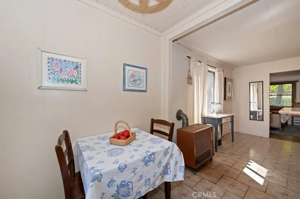 This is a cute vintage cabin featuring a cozy living room with a fireplace, a spacious kitchen with newer appliances, a dining area and a bathroom on the main level. There is a deck in the back of the house, and a level yard area. Upstairs is a spacious loft style bedroom with 2 sides. There is a doorway that could have a door installed for more privacy; one side has two twin beds, and the other side has a queen-sized bed. The home has been a successful STR. Parking is in front of the house, with room for 1-2 vehicles depending on the size.
