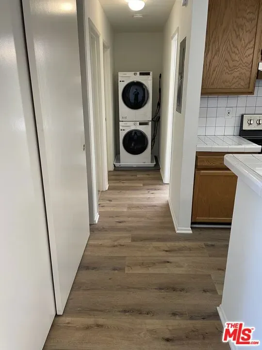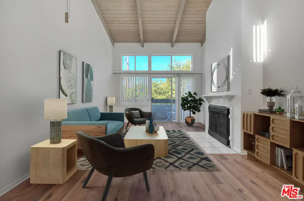 Gorgeous bright top floor interior facing 2 bedroom 2 bath condo. Private and quiet location with private direct entry access. This condo features lovely high vaulted ceiling in the living room with beautiful upgraded laminate vinyl floors. Updated stainless appliances in kitchen with 2 nice bedrooms and 2 baths. Decorative fireplace in living room with a lovely private patio with treetop views. In unit laundry with newer washer & dryer. This wonderful gated complex features a swimming pool, hot tub, tennis courts, rec room with ping pong and 2 car tandem parking in a gated and covered parking area. Windsor Fountain is located in the top rated Culver City School District with Farragut Elementary and near all Culver City shopping and entertainment.