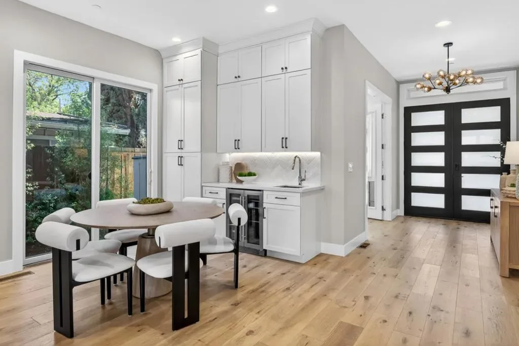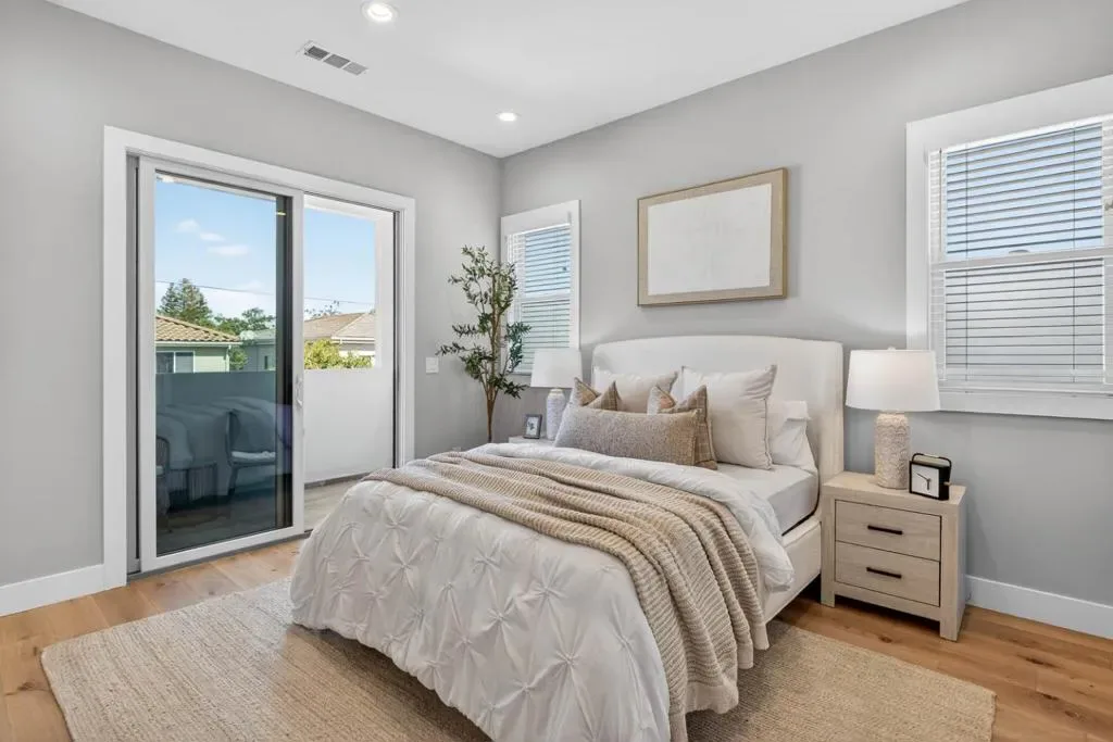 A newer 2024 modern home in the heart of Cupertino, ideally located near Cupertino Main Street and Apple Park, and zoned for top-rated schools including D. J. Sedgwick Elem., Hyde Mid., and Cupertino High. This thoughtfully designed residence features an open-concept layout with 10-ft ceilings on both floors, expansive Andersen windows, a dedicated office, bay window seating, custom cabinetry, and ample storage. The kitchen boasts premium Thermador appliances, a double waterfall island, full-height cabinetry, Grohe fixtures, tile backsplash, & a wet bar, with seamless access to a covered patio for indoor-outdoor living. The primary suite offers a private balcony and spa-like bath with freestanding tub, dual vanities, skylight, and glass-enclosed shower. Additional highlights include a modern staircase, recessed lighting, built-in speakers, security system, and PoE wiring. The home is fully electric with owned solar, heat pump systems, 3 HVAC zones, & dual EV charging. The landscaped yard features a paved driveway, mature greenery, & irrigation system. Includes an ADU, ideal for guests, in-law, separate working space, or rental.