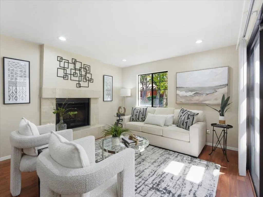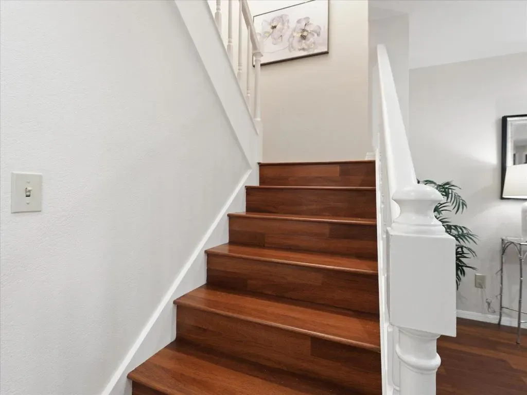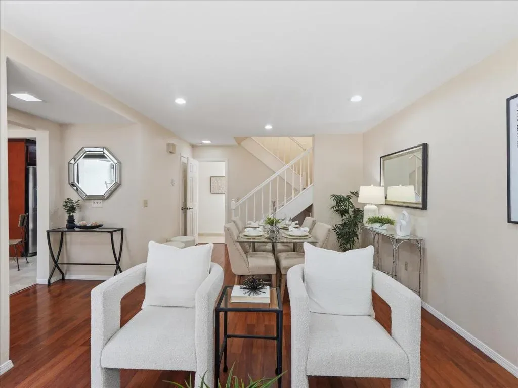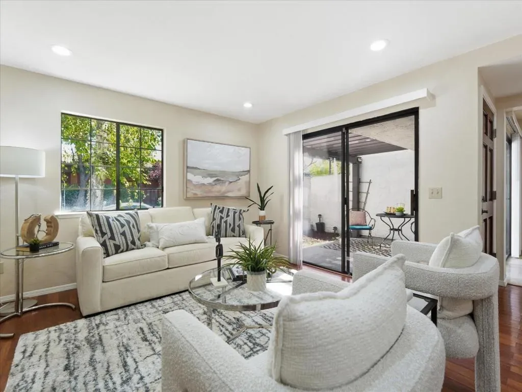 Welcome to this beautifully updated end-unit townhome in the sought-after Portal Plaza community, just minutes from Apple Park and within Cupertinos top-rated school district. *This spacious two-story residence offers 2 bedrooms and 2.5 bathrooms, with an ideal functional layout. The inviting front patio creates a perfect space for relaxing, while the light-filled living room features a seamless indoor-outdoor flow. *The renovated kitchen includes granite countertops, stainless steel appliances, and ample cabinetry, complemented by a convenient powder room and in-unit stacked washer, dryer on the main level. Upstairs, the home features a high-ceiling primary suite and a large secondary bedroom, both with updated bathrooms. Additional highlights include new interior paint, laminate flooring, recessed lighting, a one-car garage, two parking permits, & ample guest parking. Ideally located just minutes from Apple campus, with easy access to Highways 280 & 85 and Lawrence Expressway. Enjoy a vibrant lifestyle with walk to Marukai Market, parks, the Cupertino Library, shopping, and dining. The community features a pool, and monthly dues cover water, garbage, roof, exterior maintenance, garage structure, and common areas. Don’t miss this opportunity in a prime Cupertino location!
