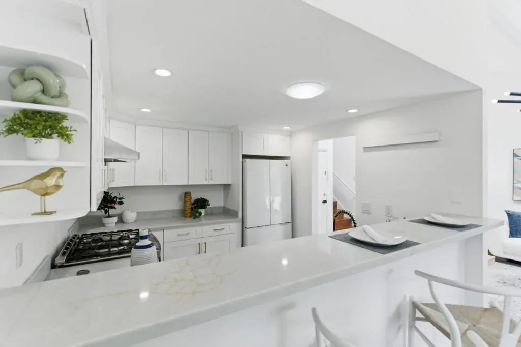 Beautifully remodeled townhome with vaulted ceilings and abundant natural light in the heart of Cupertino, offering a bright and modern living experience in a highly sought-after location. The main living area features a dramatic high ceiling with skylight and fireplace, creating a light-filled space that seamlessly connects to a private patio. The updated kitchen showcases brand-new cabinetry, countertops, sink, faucet, and exhaust fan, complemented by new flooring, fresh interior paint and recessed lighting Thoughtful upgrades extend beyond aesthetics, including updated gas lines, a replaced water heater, newer gas stove & AC. The garage offers generous storage room & features a modern opener system with built-in camera for added convenience and security. Enjoy access to community amenities: including swimming pools, tennis court, clubhouse + fitness center, and a childrens play area for relaxation. The community clubhouse also serves as a social hub, where children enjoy activities and build lasting friendships. Situated within the award-winning Cupertino school district. Ideally located minutes from Apple Park, Cupertino Village, shopping, dining, and major commuter routes including Hwy 280. This home presents an exceptional opportunity in the heart of Silicon Valley.