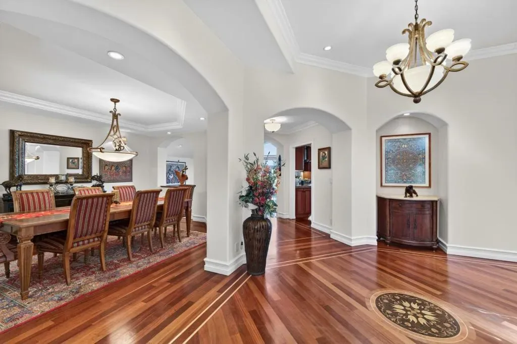 A masterful blend of Mediterranean architecture and refined European finishes, this estate delivers elegance and executive-level comfort. Custom forged iron balusters frame the staircase & front entry and Brazilian cherry hardwood floors with intricate inlays and borders flow beneath soaring ceilings adorned with crown moulding and recessed lighting. The main level has 4 bedrooms, 2 full bathrooms, and 1/2 bath while the primary suite upstairs serves as a retreat with a fireplace, bonus office/nursery, oversized walk-in closet, & ensuite bathroom. Designed for everyday and active living, formal entertaining or even a telecommuting sanctuary. There is a separate living room, formal dining room, & an expansive family room with fireplace. French doors open up to unobstrucuted views of Stevens Canyon Reserve. The chefs kitchen features high-end stainless steel appliances and custom cabinetry. There are 2 inviting patios for indoor-outdoor entertaining, an attached 2-car garage with EV charger, laundry room, wiring for integrated audio, and bonus storage. Located in a private cul-de-sac, near premier hiking and biking trails, golf & tennis clubs, acclaimed wineries, & tech campuses including Apple & NVIDIA. Walking distance to top schools, Kennedy Middle and Monta Vista High.