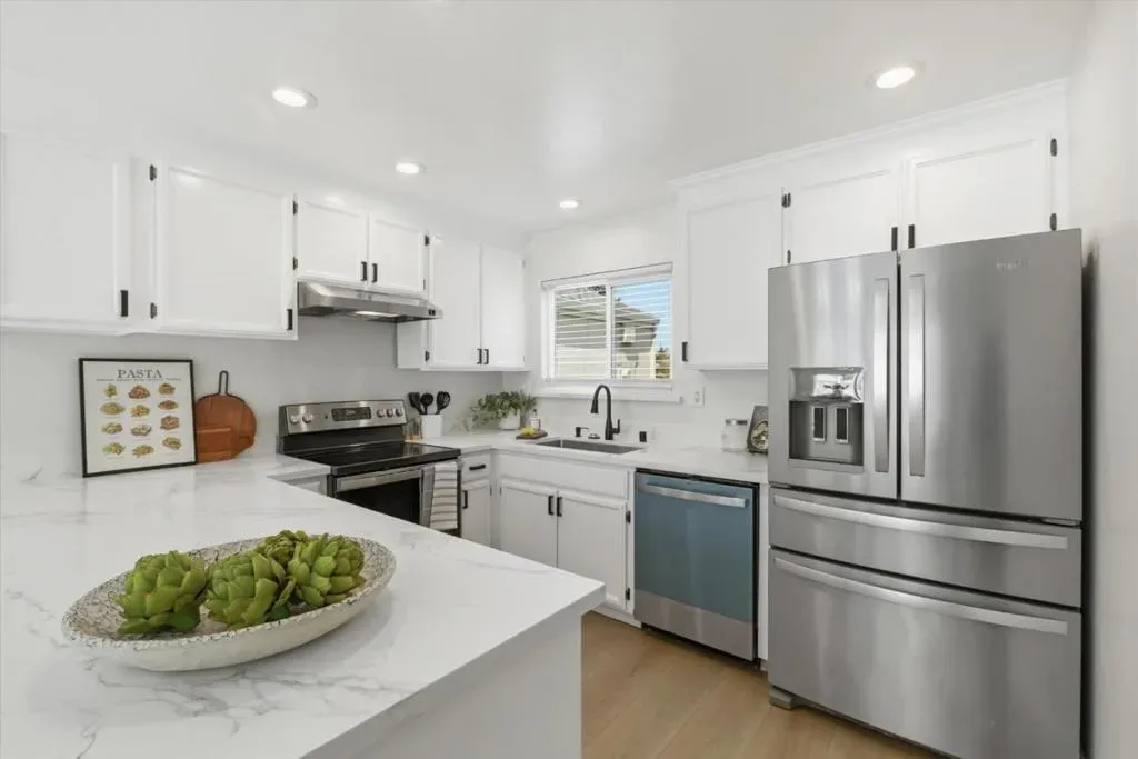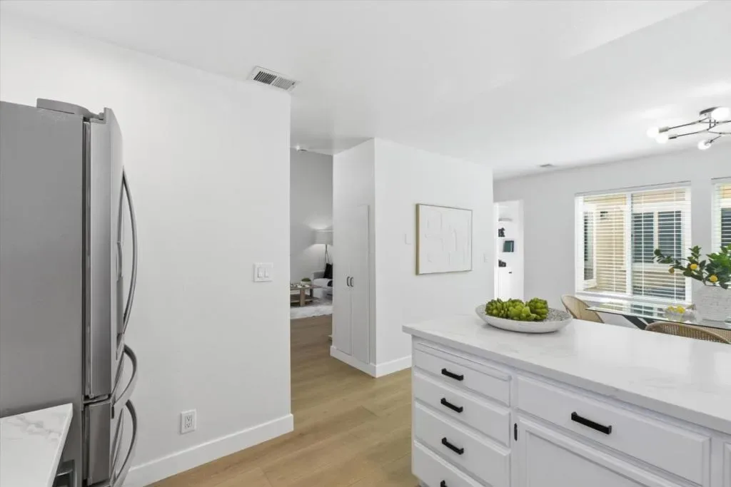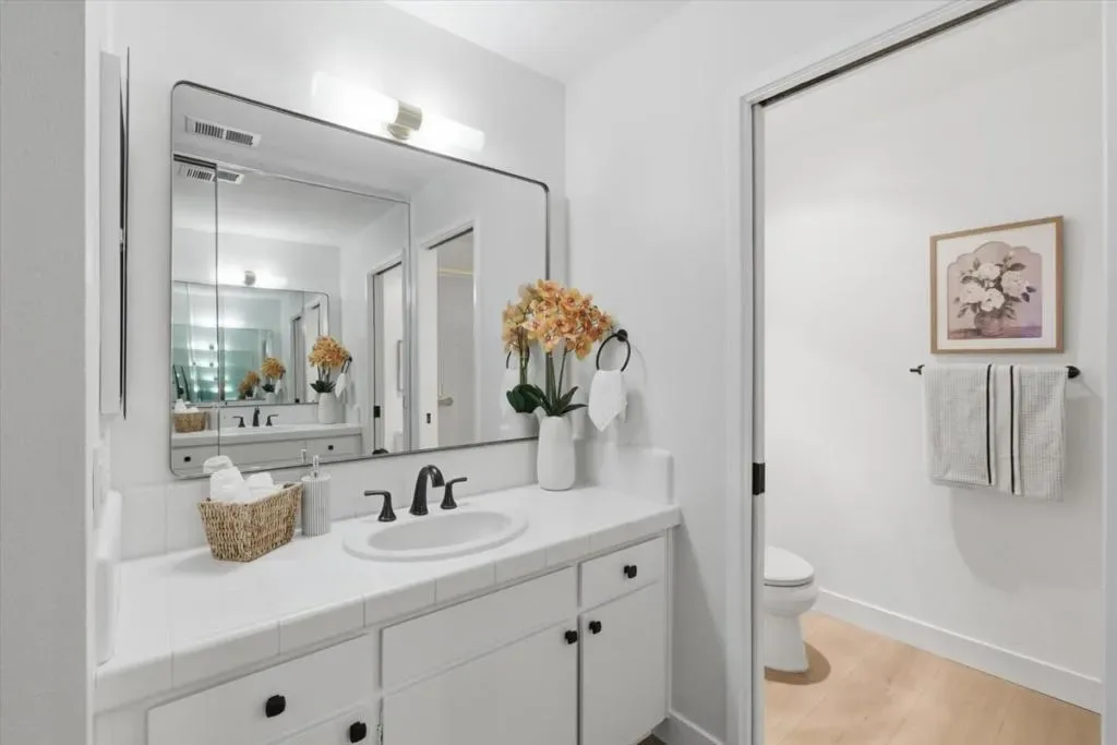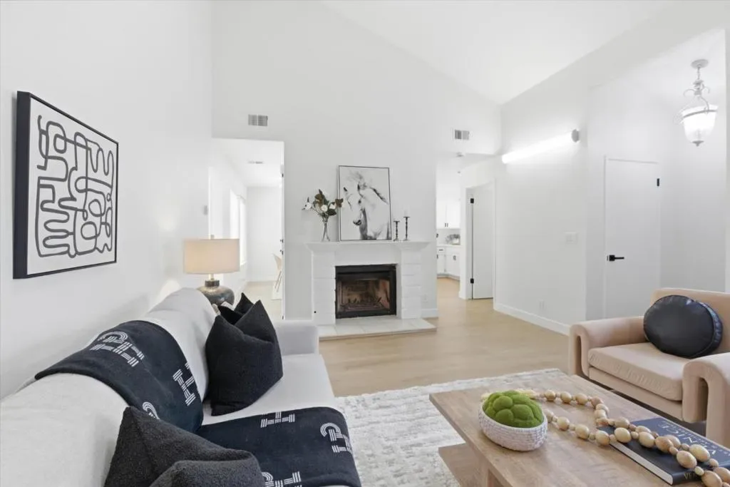 Lives Like a Cupertino Single Family Home – 1313sf ALL ON ONE LEVEL with Wrap Around Yard & Extraordinary Primary Retreat Featuring a Private Bonus Room, Ideal for Office, Nursery, or Lounge. Nestled within a Quiet & Serene Residential Enclave Opening to Lush Common Greens. The Best in Academics with Stevens Creek Elem, Kennedy Middle & Monta Vista High A rare opportunity offering space, privacy, & seamless indoor outdoor living in a highly desirable Cupertino setting. The main living areas showcase soaring vaulted ceilings, abundant natural light, and a fluid layout designed for everyday living & entertaining. Remodeled modern farmhouse inspired kitchen features white shaker cabinetry, quartz counters, stainless appliances, & a breakfast bar overlooking the central living spaces. The expansive primary retreat is a true highlight, complete with a private bonus room, fireplace & direct slider door access to the backyard. A modern conveniences throughout: gleaming wood like plank floors, dual pane windows, interior laundry, & central heating and AC. Enjoy lush wrap around gardens with blooming flowers and direct access to a park like greenbelt. Enjoy the beauty of the foothills with Silicon Valley at your fingertips! Whole Foods, Memorial Park, De Anza College! Welcome Home!