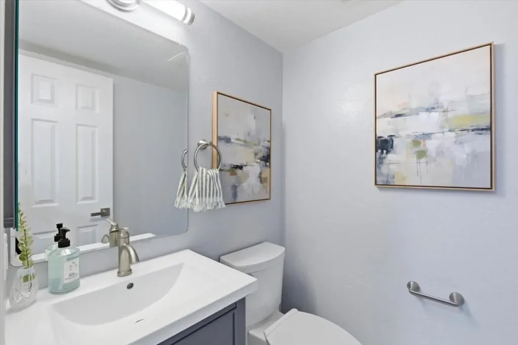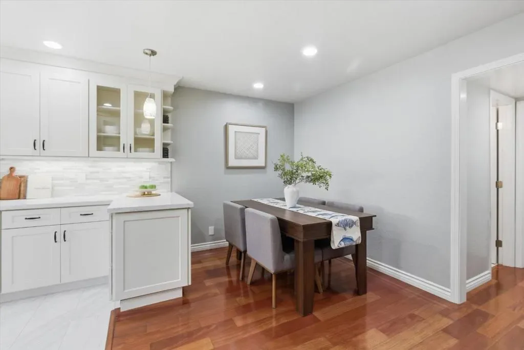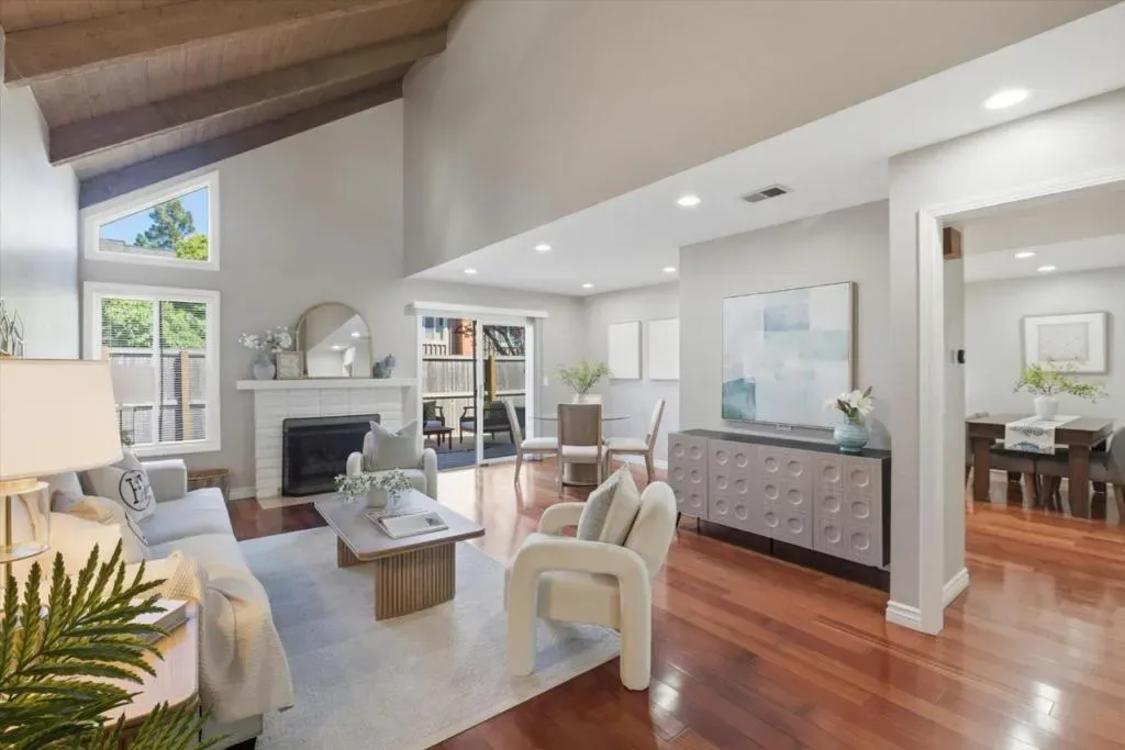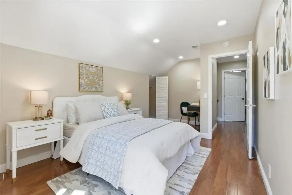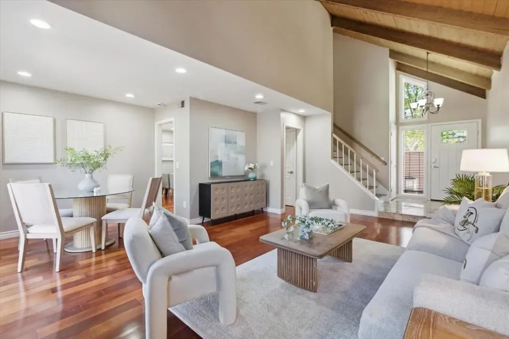 Modern Elegance Awaits in this Stunningly Renovated 3-Bedroom, 2.5-bath Home in Cupertinos most sought after, gated community – De Anza Oaks. Academic excellence: Stevens Creek Elem, Kennedy Middle & Monta Vista High! Enter into the formal entry & experience the light filled & airy ambiance w/ vaulted ceilings & large windows. Beautiful, cherrywood floors canvas the main living areas. The kitchen is any chef’s dream welcoming you w/ white shaker cabinetry, quartz counters, SS appliances, tons of storage complete w/ a walk-in pantry. The Luxurious Primary Suite is exceptionally spacious in size w/ a romantic vibe. Boasting a walk in closet & a ZEN en-suite bathroom complete w/ double sink vanity, built-in storage, large shower w/ rain showerhead & body massage jets. Two additional bedrooms share a walk-out balcony w/ views of the mountains. A quiet & serene cul-de-sac location. Numerous highlights: Double Pane Windows, central AC, interior laundry room, EV Charger in garage. Relax & unwind in your private backyard w/ paver patio. LOW HOA w/ resort amenities: Huge Park, Playground, 2 Pools, Big Clubhouse, Trails… all secured behind gates. Enjoy the beauty of the foothills w/ Silicon Valley at your fingertips! Close to Whole Foods, Memorial Park, De Anza College! Welcome Home!