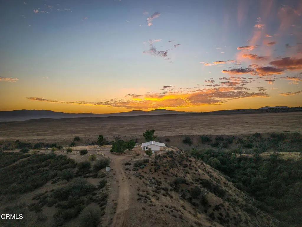 Embrace the beauty of wide-open living on this 320-acre Cuyama Valley ranch, where fresh air, rolling hills, wildflower-filled meadows and ancient oaks meet endless skies. Here, mornings begin with sunrises over the mountains and evenings end beneath a canopy of stars. Ride horseback along miles of trails, follow the seasonal creek shaded by sycamores, or simply savor the stillness and solitude that define this expansive retreat. The property includes a partially completed off-grid 2-bedroom, 2-bathroom home with hardwood floors, a chef’s kitchen featuring custom cabinetry and covered outdoor deck. Additional highlights include a metal roof, upgraded systems, well water, fruit trees and corrals, offering endless potential to create your dream homestead, equestrian haven, or weekend sanctuary.