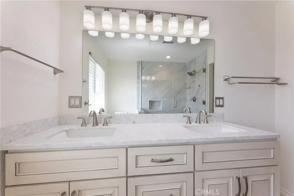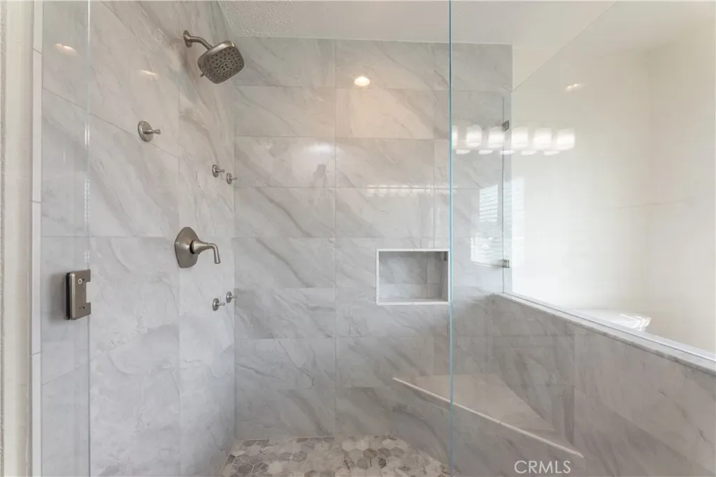 The primary suite has been thoughtfully remodeled to include a generous walk-in closet and the updated en-suite with a premium glass shower and fixtures.