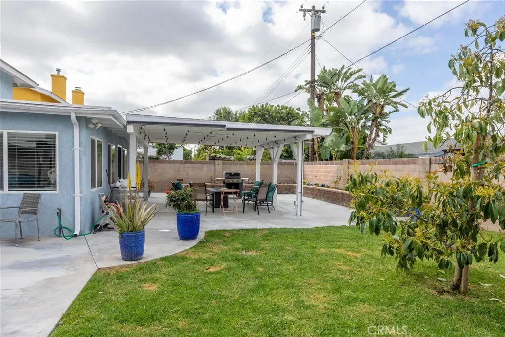 The freshly updated exterior boasts new stucco, fresh paint, and architecturally substantial porch beams in both front and back. The private backyard is designed for relaxing and entertaining, featuring a covered patio with surround drop down shades, a mature avocado tree, tastefully arranged brick tiered planters, and an elegant natural gas fire-pit. The plumbed natural gas connection and multiple electrical outlets are concealed in conduit under the slab to accommodate the fire pit, a BBQ and anything else requiring gas and/or electricity.