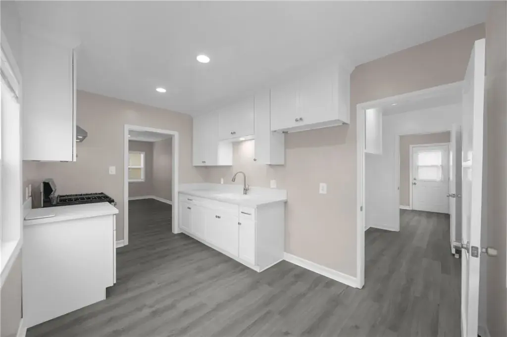 The Newly Remodeled Back Home Features a Large Bedroom and Full Bathroom with a Bright, Open-Concept Layout. Enjoy the Modern Kitchen with Fresh White Shaker Cabinets, Quartz Countertops, All Opening to the Living and Dining Areas. New luxury vinyl plank flooring Flows Throughout, Paired with Recessed Lighting, New Fixtures, and a Seamless Indoor/Outdoor Connection Through Sliding Glass Doors To The Spacious Driveway and Yard.