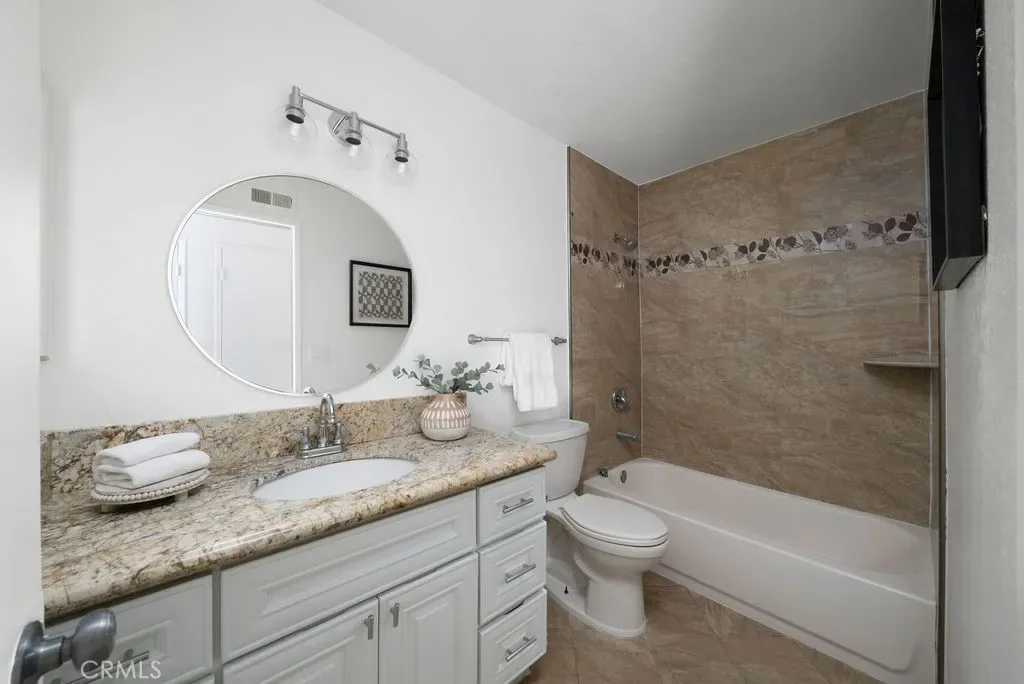 At the center of the home, the kitchen showcases granite countertops, soft-close cabinetry, and updated hardware, blending style with functionality. The bathrooms have been tastefully renovated with a new bathroom design, updated light fixtures, and modern finishes that elevate the overall aesthetic.