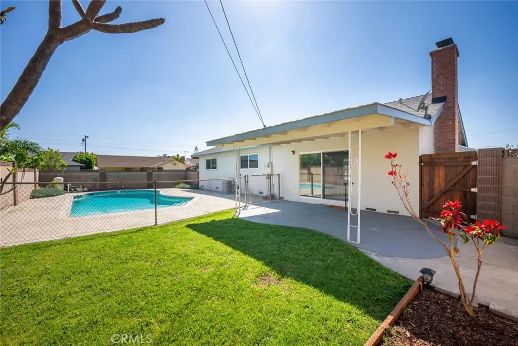 Charming pool home in the desirable Fairway Park tract in Cypress! This 3-bedroom residence offers great curb appeal with lush landscaping and a move-in ready interior that waits for your personal touch. Freshly painted in neutral tones, featuring laminate flooring and recessed lighting throughout. The updated kitchen boasts quartz countertops, stainless steel sink, and included appliances—perfect for everyday living and entertaining. Enjoy gathering in the spacious living room with a cozy gas fireplace, seamlessly connected to the dining area for easy hosting. In addition to the primary bedroom, two additional bedrooms offer flexibility for family, guests, or a home office. The primary suite includes dual closets and a private bath with shower, commode, and new vanity area. Situated on a desirable corner lot, the backyard is an entertainer’s dream with a large, refreshing pool, patio space, and yard area—ideal for relaxing or hosting guests. Additional highlights include double pane windows, central A/C and heat, and a 2-car garage with laundry. Conveniently located near parks, shopping, dining, and top-rated Cypress schools, including Oxford Academy (entrance exam required). Don’t miss this opportunity! Be a part of the heart of Cypress, start packing—and don’t forget your swimsuit! Welcome home to St. George.