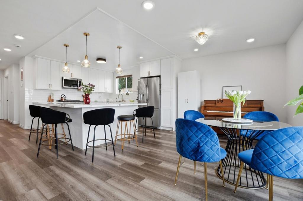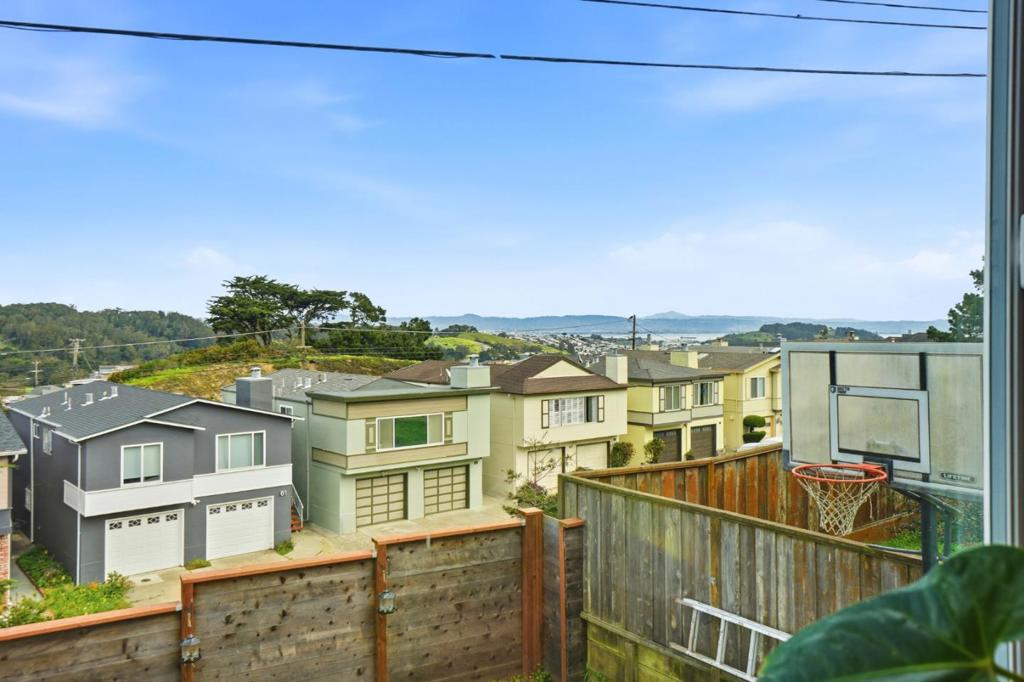 Stunning fully remodeled home with a legal second unit and iconic city views. The upper-level features 3 bedrooms, while the permitted lower-level 1-bedroom, 1-bath unit offers a private entrance, kitchenette, entertainment space, and rear yard access ideal for rental income, guests, or multigenerational living. Enjoy sweeping views of the Salesforce Tower, City Hall, and McLaren Park. The main level showcases a 2023 open-concept kitchen with quartz countertops, dining area, and premium stainless steel ZLINE appliances, including a 6-burner Hybrid Fuel range, hood, oven, refrigerator, and dishwasher. Luxury vinyl flooring and recessed lighting enhance both levels. Bathrooms were fully remodeled in 2023 with Vovo toilets, designer tile, updated vanities, and tiled shower and tub surrounds. Energy-efficient upgrades include fully owned solar (approx. $100/month electric including HVAC), double-pane windows (2023), new electric furnace, A/C and ductwork (2024), new water heater (2024), 200-amp panel (2024), and double electric garage doors (2022). Fresh interior and exterior paint (2025), new fencing and gates (2024), Ring camera system, and included washer and dryer complete this move-in-ready property in a prime location with breathtaking views.