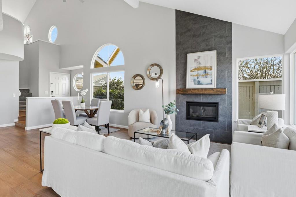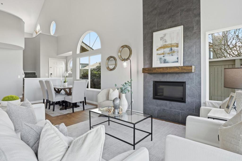 FHA Approved Community. Welcome home to this move-in ready, fully renovated semi-detached townhome with amazing, unobstructed panoramic views of the San Francisco Bay Area, located in the family and pet-friendly, parklike Village in the Park community. Hallmark French Oak engineered hardwood floors run through the main level and bedrooms. The spacious eat-in kitchen features custom wood cabinetry, modern countertops, and stainless steel appliances including Bosch double ovens, cooktop, microwave, dishwasher, and a Whirlpool refrigerator. Newer dual-pane windows and sliding doors enhance light and efficiency. Each bathroom is beautifully remodeled with custom tile, new vanities, and water-efficient fixtures. Upstairs offers two bedrooms, including a primary suite where you wake up to stunning Bay views, plus a den that can easily be converted to a third bedroom. The low-maintenance backyard is fully paved with custom pavers, ideal for relaxing or entertaining. A new electrical sub-panel and EV outlet were installed in 2022. 2-car garage, driveway parking, plus 2 permitted spaces. Community amenities include a pool, hot tub, and lush greenbelts. Close to San Bruno Mountain trails, Westlake shopping, BART, and major freeways for easy travel. A rare opportunity you wont want to miss!