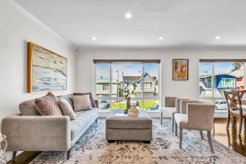 Welcome to Saint Francis Heights! This spacious Daly City home offers a versatile layout with a bright, open floor plan and new roof. The upper level features a remodeled kitchen, engineered hardwood floors, 3 bedrooms, and 2 updated bathrooms. Large double-pane windows fill the home with natural light, creating a warm and inviting atmosphere. The lower level includes a separate entrance and offers a living area, bedroom, full bathroom, and kitchenette ideal for extended family, guests, or flexible living arrangements. With its private flexible layout, the lower level offers strong income potentialestimated at approximately $2,800/month, an excellent opportunity to offset mortgage costs and enhance long-term value. A one-car garage with ample storage provides convenient access to both levels. Additional highlights include leased solar panels, energy-efficient appliances, and a tankless water heater. The flat, low-maintenance backyard with patio is perfect for outdoor gatherings and everyday enjoyment. Conveniently located near schools, parks, Daly City BART, Serramonte Mall, Westlake Shopping Center, and with easy access to Highways 101 and 280. Enjoy a vibrant community with diverse dining, nearby hiking trails, and close proximity to beaches and San Francisco.