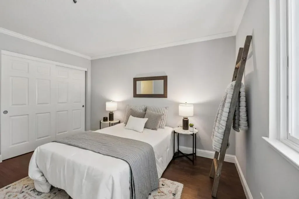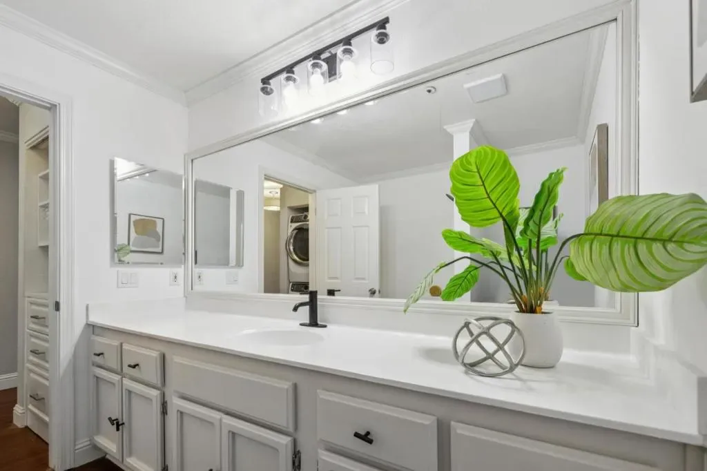 Beautifully updated residence offering exceptional volume, natural light, and versatility that lives far beyond its footprint. Soaring cathedral ceilings and an expansive living area create an immediate sense of openness, enhanced by oversized windows, rich wood flooring, and a warm gas fireplace. The layout flows seamlessly into a dedicated dining area with direct access to a private balcony, ideal for morning coffee or evening relaxation. The updated kitchen and remodeled bathrooms reflect thoughtful upgrades throughout, while triple pane windows and a whole house fan enhance comfort and efficiency. Both bedrooms are privately positioned at the rear of the home with no direct rear neighbors, offering a rare sense of privacy. The spacious primary suite features a walk in closet, additional storage, and a beautifully renovated bath with soaking tub and separate shower. A standout feature is the expansive lower level bonus area off the attached 2 car garage with additional storage space, offering flexibility for a potential third bedroom, office, media room, or guest space. A rare combination of space, privacy, and adaptable living in todays market.