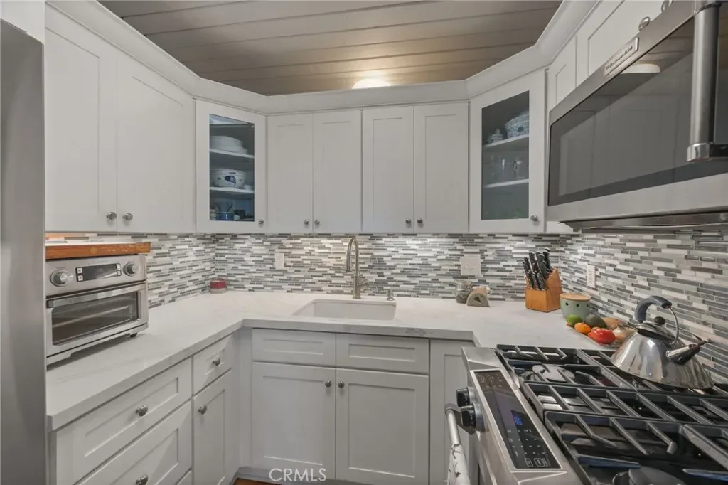 The heart of this home shines with a completely renovated kitchen (2021) featuring: Custom cabinetry with ample storage, elegant quartz countertops, stylish modern tile back splash, brand-new stainless steel appliances, contemporary sink and fixtures, and beautiful bamboo flooring throughout.