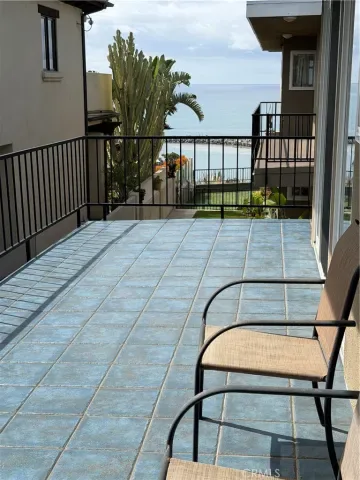 Ideally situated on the bluff, this updated upper-level 2-bedroom, 2-bath residence features a light-filled great room floor plan, The living room showcases a fireplace, creating a warm and inviting coastal ambiance, while the kitchen and dining room is thoughtfully positioned to capture ocean views. There is a deck off the dining room that opens up even bettter ocean views. The spacious primary suite includes a private bath and patio access, offering a peaceful retreat. Laundry is on site. Located in the intimate, gated Las Marianas community with only four units, residents enjoy ocean views and sunsets from the community area. This is coastal living at its finest—rare, refined, and perfectly located