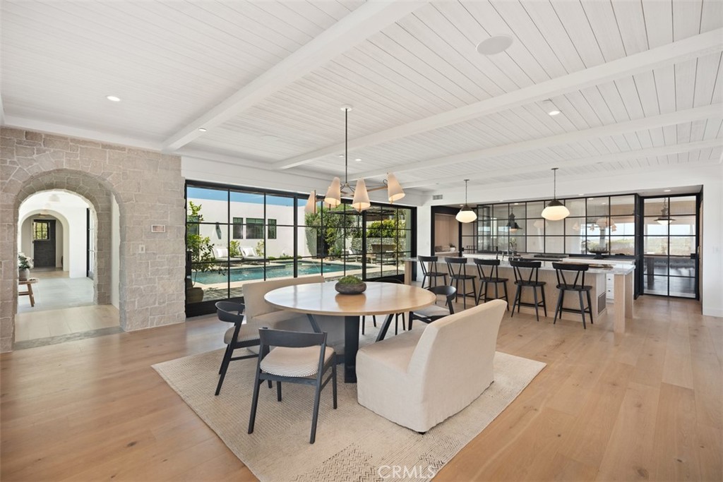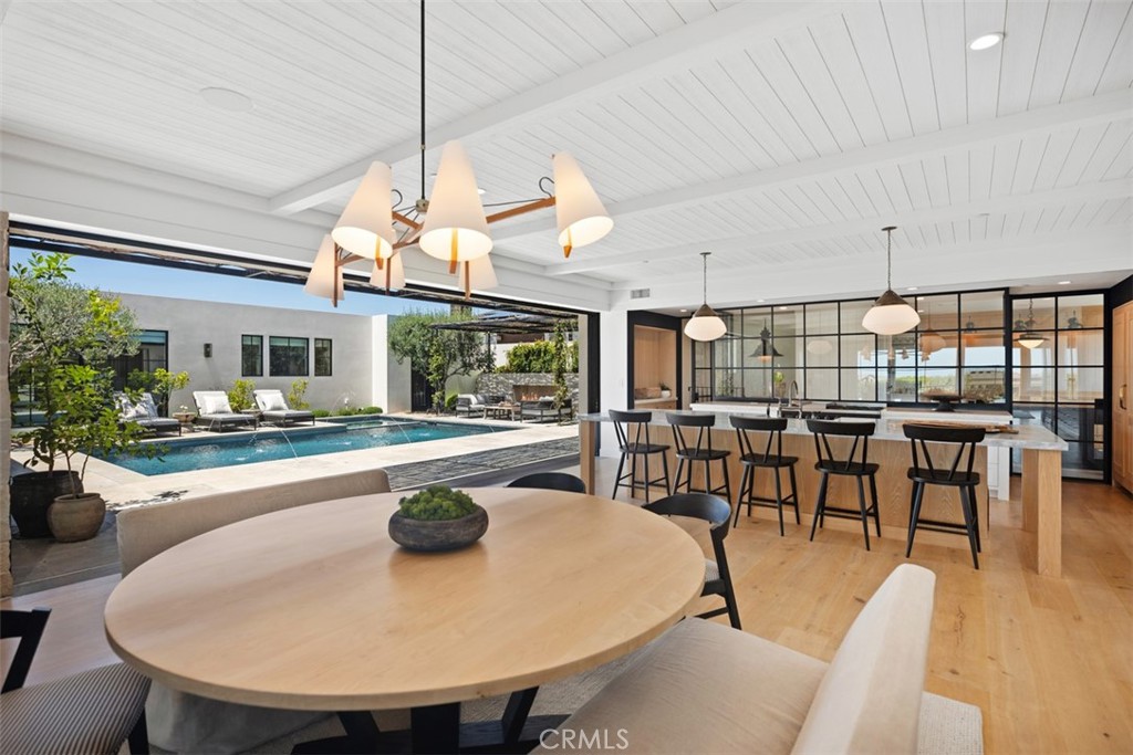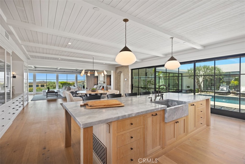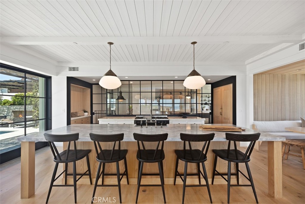 Nestled within the prestigious confines of Monarch Bay, this exquisite estate invites you into a world of unparalleled luxury & timeless elegance. Crafted by the visionary architect & designer Bob White in 2022, this ground-up construction residence seamlessly blends modern amenities with classic charm. As you enter through the guard-gated community, a sense of exclusivity & sophistication envelops you. Monarch Bay’s allure is undeniable, with its pristine beaches & access to the esteemed Monarch Bay Beach Club restaurant, where Waldorf Astoria-inspired cuisine awaits. Upon arrival at the residence, prepare to be captivated by the meticulous attention to detail evident in every corner. Carefully curated antique lighting fixtures adorn the space, each with its own story to tell. From the transformed Parisian street light in the front stairwell to the enigmatic German Holophane pendant in the dining nook, these fixtures add a touch of history & intrigue to the home’s ambiance. The living spaces welcome you with natural materials like combed cedar wood & limestone walls, within a free-flowing floorplan punctuated by expansive walls of glass & blackened steel which maximizes natural light & seamless indoor-outdoor living. The kitchen is a culinary enthusiast’s dream, boasting top-of-the-line appliances, custom white oak cabinets, quartzite & Italian marble accents. Whether you’re hosting an intimate gathering or preparing a gourmet meal for friends & family, this space offers both functionality & style. In the primary bath, indulge in spa-like luxury with Waterworks fixtures, a freestanding tub, & Calcutta marble accents. Every detail has been thoughtfully curated to create a sanctuary of relaxation & rejuvenation. From the gym bath with its Kohler Brockway sink to the sons’ bath featuring Zellige tile & Phylrich fixtures, every room offers a unique blend of comfort & sophistication. Step outside to the meticulously landscaped grounds, where a pool deck adorned with Belgium blue limestone accents add a touch of coastal charm that beckons you to relax & unwind. Experience the epitome of coastal living at Monarch Bay. With its unparalleled craftsmanship, architectural artistry, & exclusive amenities, this residence offers a rare opportunity to live the life of luxury you’ve always dreamed of. Welcome home.