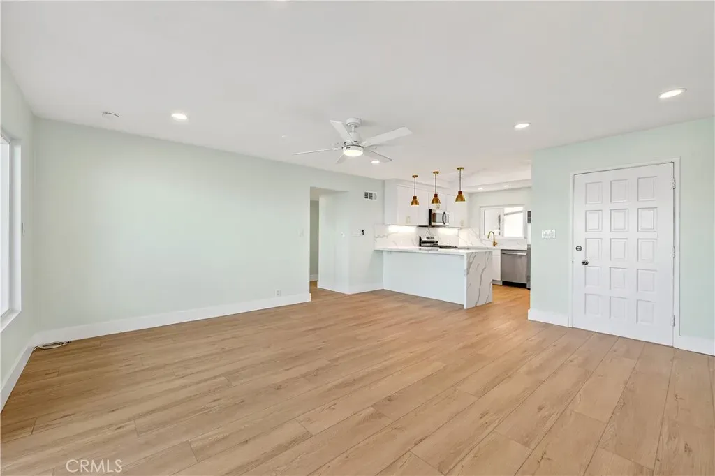 The interior has been completely transformed with a fresh, modern design and custom finishes throughout. The kitchen has been fully upgraded with high-quality materials, contemporary cabinetry, and premium appliances, opening seamlessly into the main living area. Large windows invite in natural light while showcasing the expansive ocean backdrop, creating a bright and relaxed living environment.
