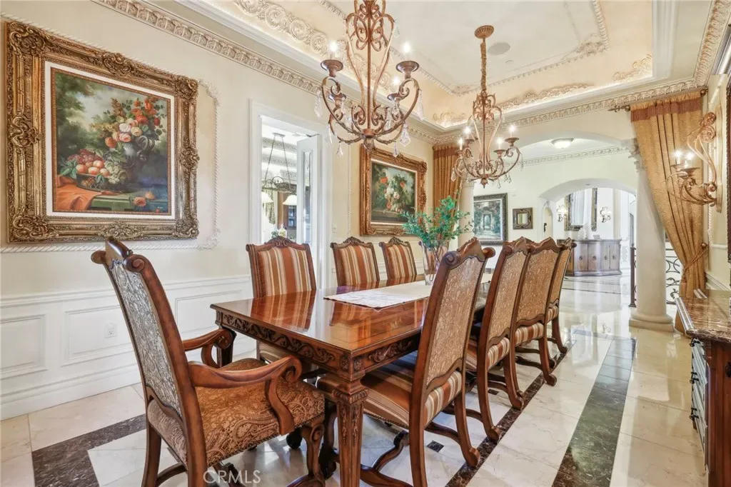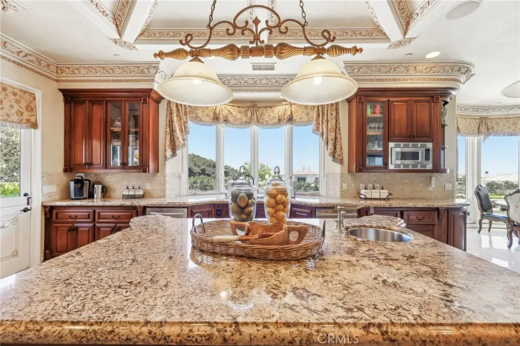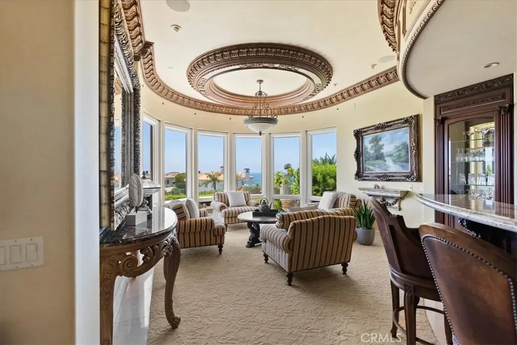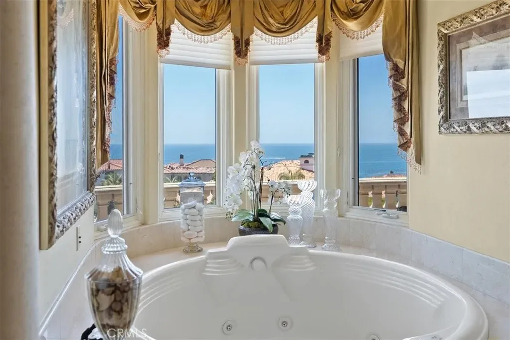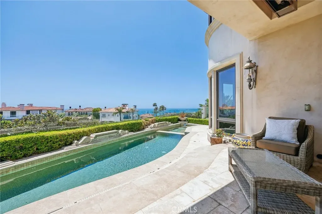 Experience unparalleled luxury in this ocean view home located in prestigious Ritz Cove. Every corner of this residence exudes elegance, with outstanding architectural details and meticulous trim work throughout. From intricately designed ceilings and doorways to beautifully crafted archways and murals, no detail has been overlooked. Step into a grand two-story foyer that sets the tone for the rest of the home. Beyond the foyer, a stunning pool glitters against the backdrop of the ocean, offering incredible views from both floors. Enjoy leisurely strolls to the beach, just a block away. A water feature winds around the home, greeting you at the front door and continuing in the back yard, which is filled with flowering bushes and fruit trees. The home is equipped with a brand new HVAC system, a fabulous entertainment TV system and features opulent cabinetry, spacious closets, and a paneled wood office. An elevator provides easy access to three levels, from the garage to the first and second floor. The primary suite boasts breathtaking whitewater views of nearby Monarch Beach. Over half a million dollars has been invested in casework alone, underscoring the quality and craftsmanship of this exceptional property. Cove lighting provides beautiful ambiance for entertaining, and a walk-in Wine Room with a glass and iron door is just off the family room area which hosts an incredible curved bar. Situated at the end of a quiet, single-loaded cul-de-sac, this luxurious residence offers both privacy and tranquility. Rarely does a home of this construction and detail come to market. Guard-gated Ritz Cove is nestled between the luxurious Ritz Carlton and Waldorf Astoria resort hotels, in a spectacular guard-gated enclave of just 101 homes. Don’t miss the opportunity to own this extraordinary property.