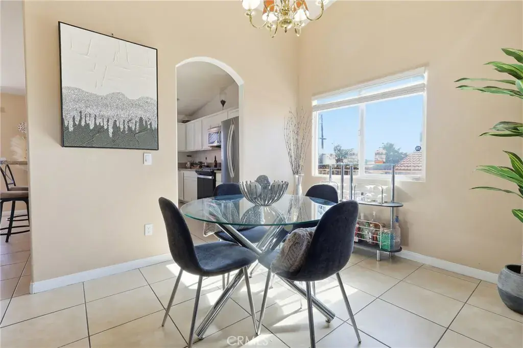 Step inside to a high ceiling living room filled with natural light, creating a bright and inviting atmosphere. The open living and dining areas flow seamlessly, making the space ideal for entertaining or everyday living.