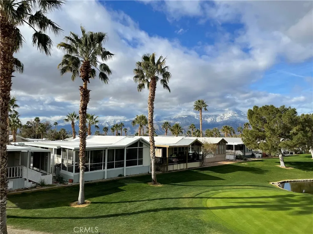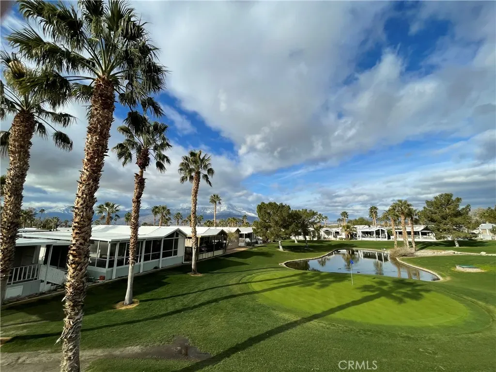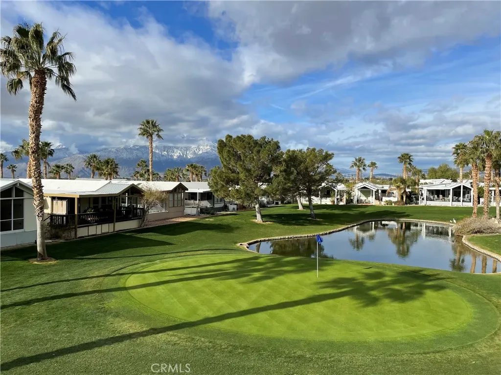 Step outside and enjoy your large, covered deck with a majestic view of desert and mountains and a front row seat to a beautiful pond and putting green in the foreground. Such a setting is perfect for relaxing or entertaining year-round. Inside, the home comes fully furnished and move in ready, featuring central air and heating for maximum comfort in every season. A California room adds valuable extra living space, while the beautifully landscaped backyard offers both privacy and room to unwind. There’s also a spacious storage shed for all your extras.