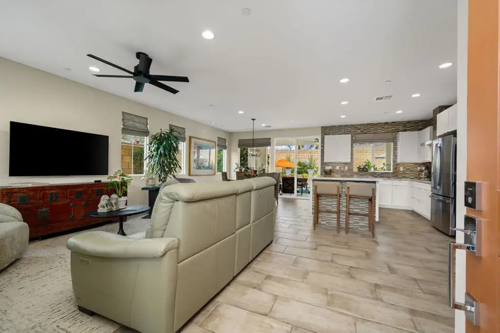 Welcome to your dream home in the highly desirable Agua Dulce community of Desert Hot Springs — where modern upgrades, thoughtful design, and desert beauty come together. This stunning residence has been extensively upgraded, offering both style and functionality throughout. Step inside to discover beautiful upgraded flooring that flows seamlessly through the open-concept living spaces. The fully enhanced kitchen is a showstopper, featuring upgraded appliances, a designer backsplash, and modern finishes that make cooking and entertaining a true pleasure. The bathrooms have been tastefully designed with elevated finishes, creating spa-like retreats within your own home. Energy efficiency is top of mind with additional solar panels, helping you enjoy lower utility costs while living sustainably. Car enthusiasts and hobbyists will appreciate the expanded garage, offering extra space for vehicles, storage, or a workshop setup. Step outside to your private backyard oasis — complete with a sparkling pool and beautifully designed landscaping that provides both serenity and privacy. Whether you’re hosting gatherings or enjoying a quiet evening under the desert sky, this outdoor space is made for relaxation. In the front courtyard, you’ll find a charming patio perfectly positioned to capture breathtaking mountain views — the ideal spot for morning coffee or sunset unwinding. This exceptional property offers upgraded comfort, energy efficiency, and resort-style living all in one of Desert Hot Springs’ most sought-after communities. Don’t miss the opportunity to make this elevated desert retreat your own.
