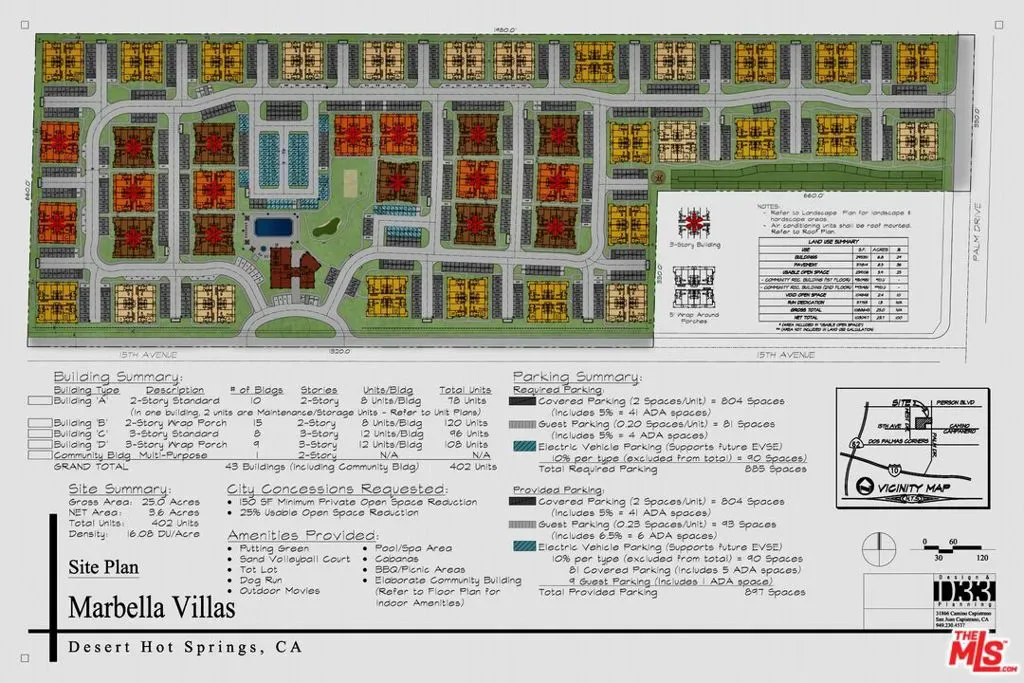 25-Acre Turnkey Multifamily Site! Located in The Spa City, Desert Hot Springs, Coachella Valley $5M ($23/SF) Shovel-ready in 6 months +/-. Four parcels, raw land, zoned high density, 656-030-005, 656-030-006, 656-030,007,656-030-008. Fully entitled for 402-unit luxury gated condo community. 20-year development agreement. NMTC zone. Why this is gold for 1031 buyers: All heavy lifting done: Phase 1 environmental, CEQA, hydrology, cultural/paleo studies, biological surveys, acoustical reports, tentative tract map, CUP site plan, full conceptual design (elevations, unit plans, carports, amenities, landscape, image board, parking/photo-metrics). Developer-friendly city cooperative planning & building dept. Full due diligence package available. Buyer to verify 1031 eligibility and conduct own due diligence. Contact us today!