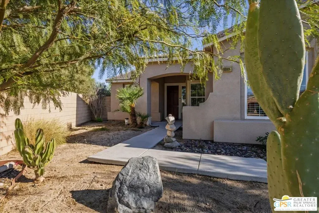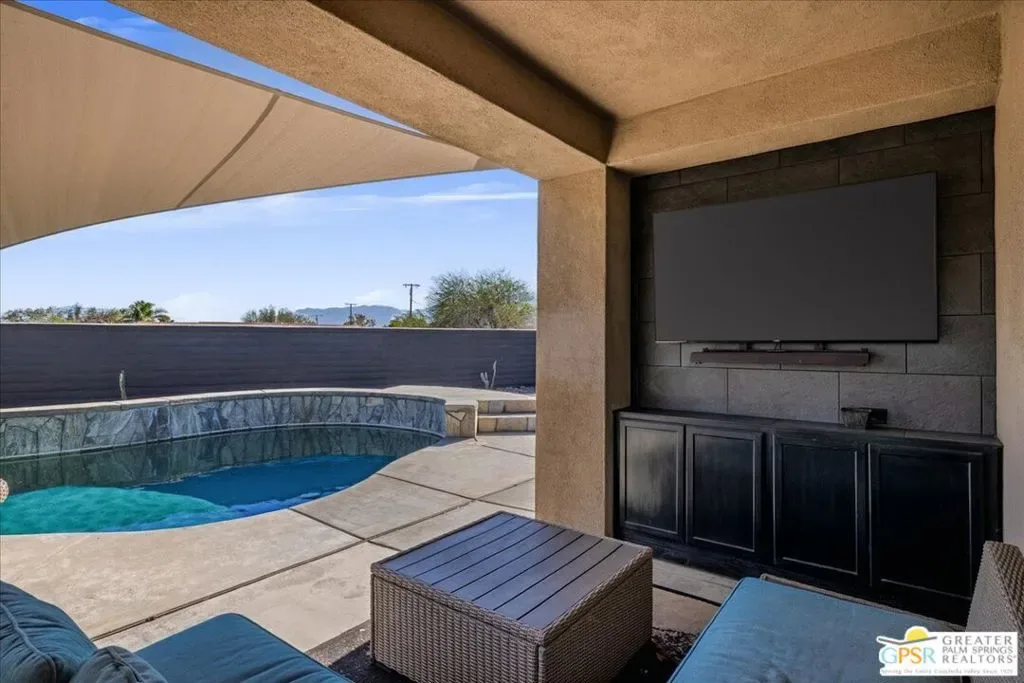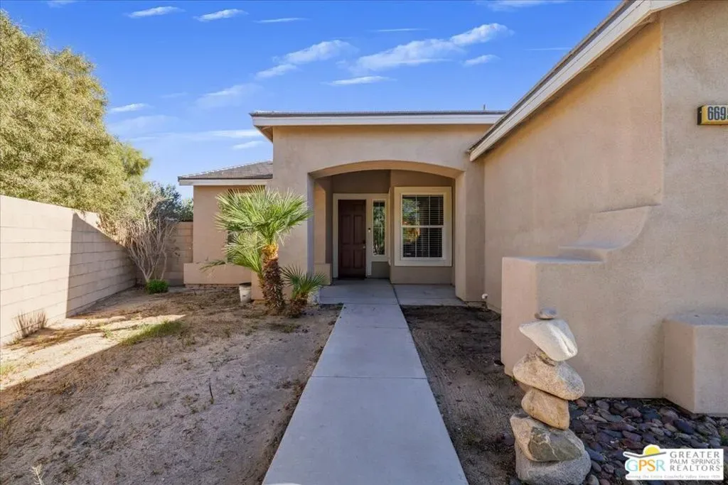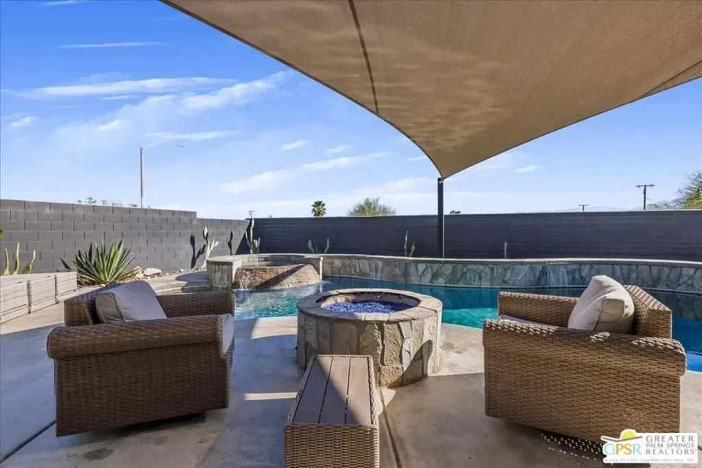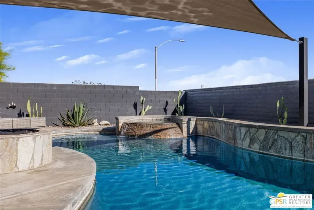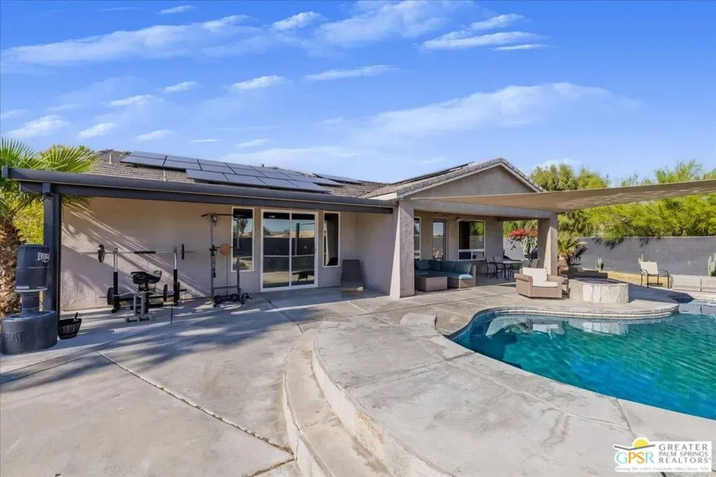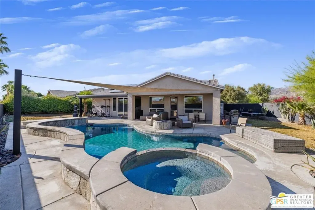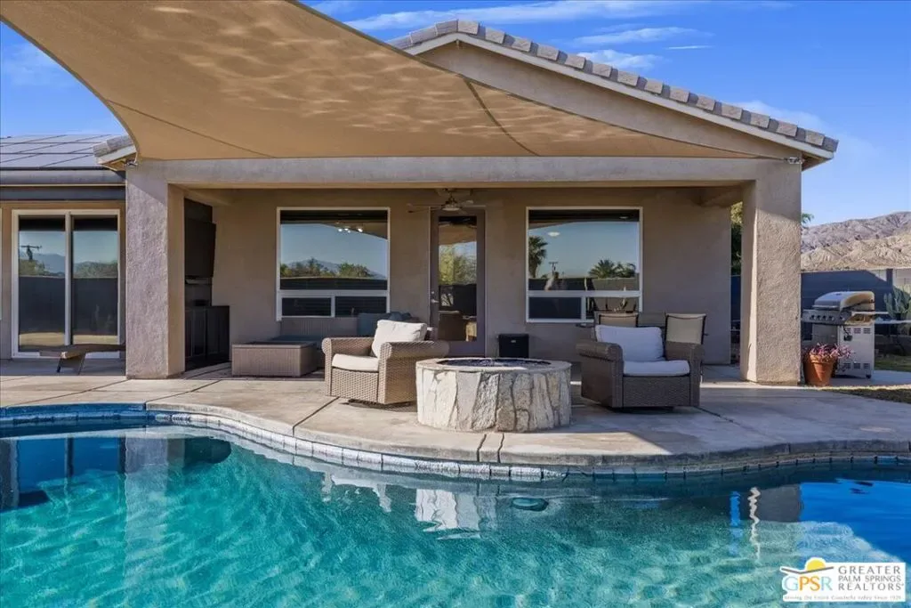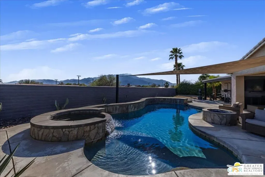 Welcome to this spacious 5-bedroom, 3 bathroom home tucked away at the end of a quiet cul-de-sac in Desert Hot Springs. Located within a gated community, this property offers the perfect blend of privacy, comfort, and scenic beauty, with stunning mountain views right from your backyard.Designed for both relaxation and entertaining, the home features a generous floor plan with ample living space for family and guests. The kitchen and bathrooms have been tastefully remodeled within the last two years, offering modern finishes and updated style throughout. The home also features a cozy gas fireplace, perfect for cooler desert evenings.Step outside to your private oasis complete with a sparkling pool featuring a tranquil waterfall, a fire pit, and a large backyard, ideal for enjoying sunny desert days and peaceful evenings under the stars.This home is equipped with energy-efficient solar panels along with two battery backup units, offering added peace of mind and potential cost savings. The air-conditioned garage adds versatility, perfect for a home gym, workshop, or additional comfort for your vehicles.Enjoy the benefits of a low monthly HOA fee while being conveniently located near local schools and amenities. The cul-de-sac location provides added tranquility with minimal traffic, making it a perfect retreat.Whether you’re looking for a primary residence, vacation home, or investment opportunity, this property delivers on space, efficiency, and lifestyle.Don’t miss your chance to own a slice of desert paradise. Sale is contingent upon upon sellers purchase of replacement home.