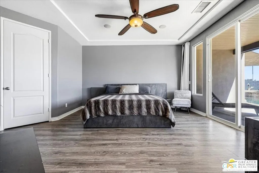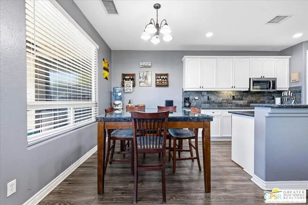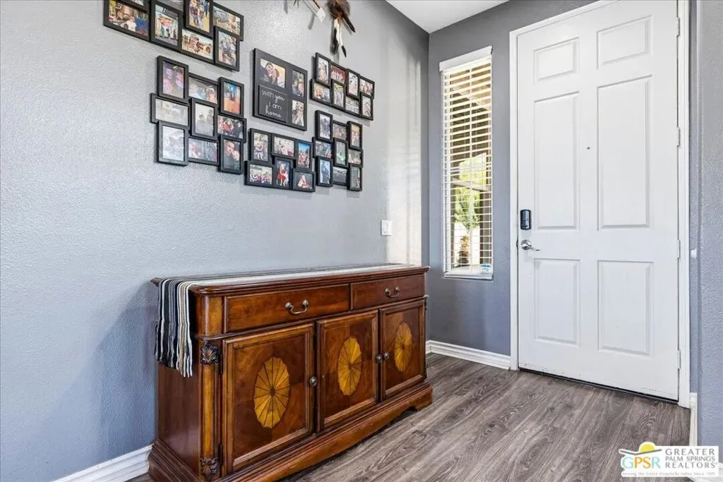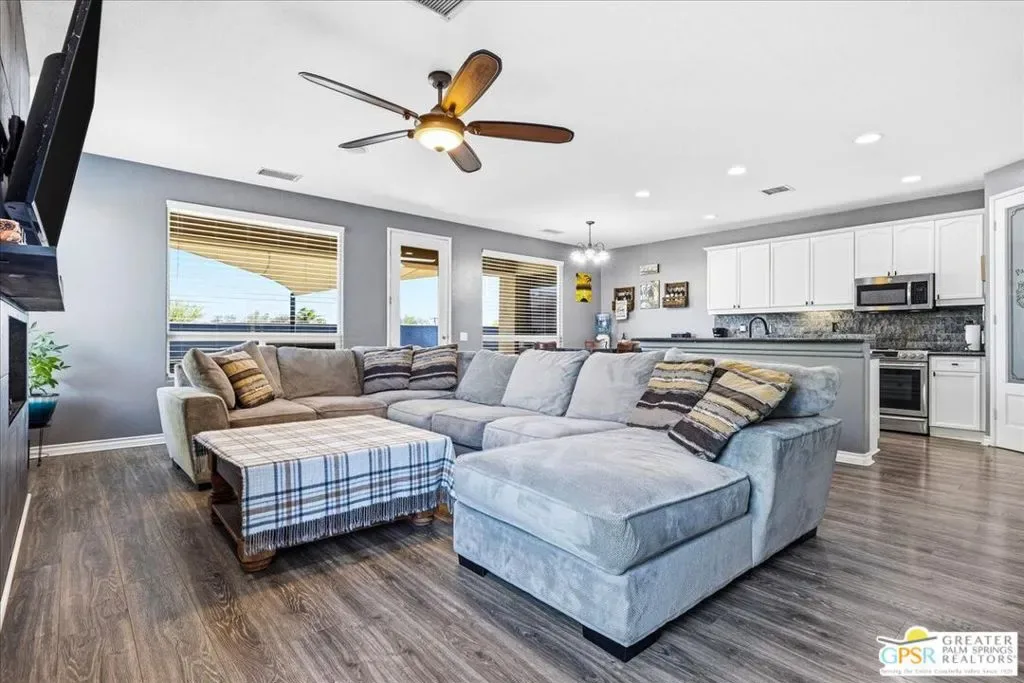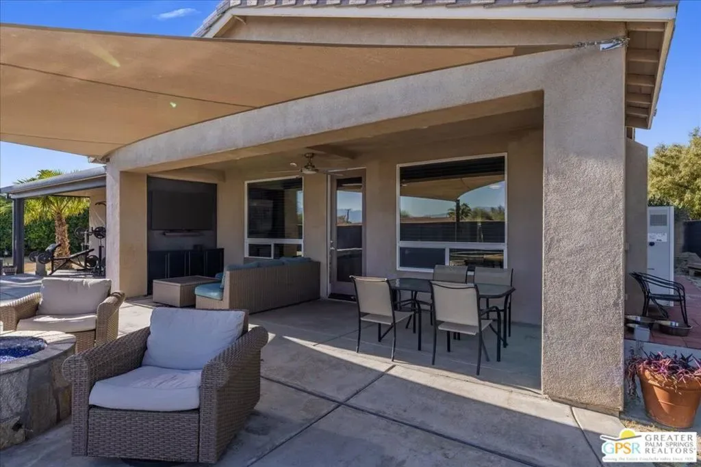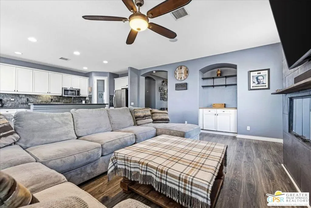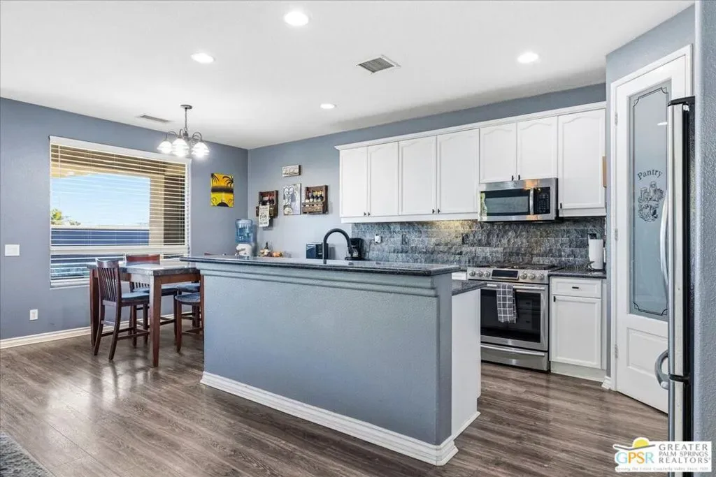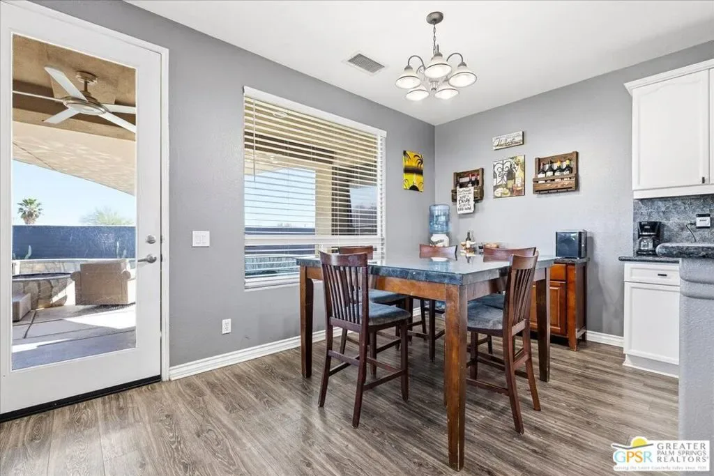Welcome to this spacious 5-bedroom, 3 bathroom home tucked away at the end of a quiet cul-de-sac in Desert Hot Springs. Located within a gated community, this property offers the perfect blend of privacy, comfort, and scenic beauty, with stunning mountain views right from your backyard.Designed for both relaxation and entertaining, the home features a generous floor plan with ample living space for family and guests. The kitchen and bathrooms have been tastefully remodeled within the last two years, offering modern finishes and updated style throughout. The home also features a cozy gas fireplace, perfect for cooler desert evenings.Step outside to your private oasis complete with a sparkling pool featuring a tranquil waterfall, a fire pit, and a large backyard, ideal for enjoying sunny desert days and peaceful evenings under the stars.This home is equipped with energy-efficient solar panels along with two battery backup units, offering added peace of mind and potential cost savings. The air-conditioned garage adds versatility, perfect for a home gym, workshop, or additional comfort for your vehicles.Enjoy the benefits of a low monthly HOA fee while being conveniently located near local schools and amenities. The cul-de-sac location provides added tranquility with minimal traffic, making it a perfect retreat.Whether you’re looking for a primary residence, vacation home, or investment opportunity, this property delivers on space, efficiency, and lifestyle.Don’t miss your chance to own a slice of desert paradise. Sale is contingent upon upon sellers purchase of replacement home.