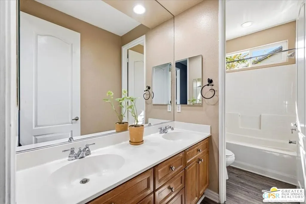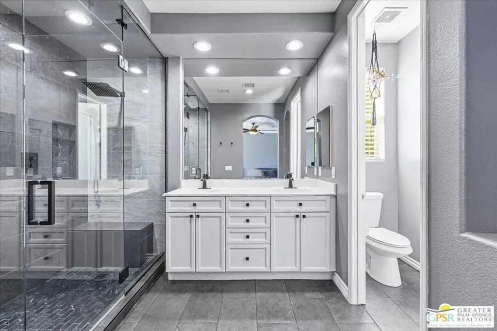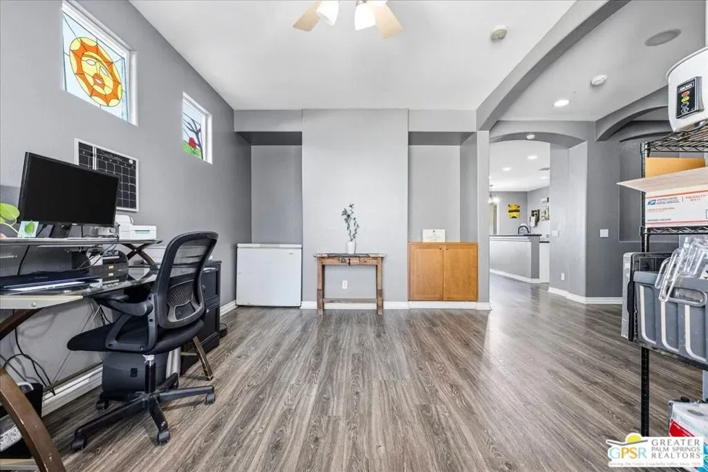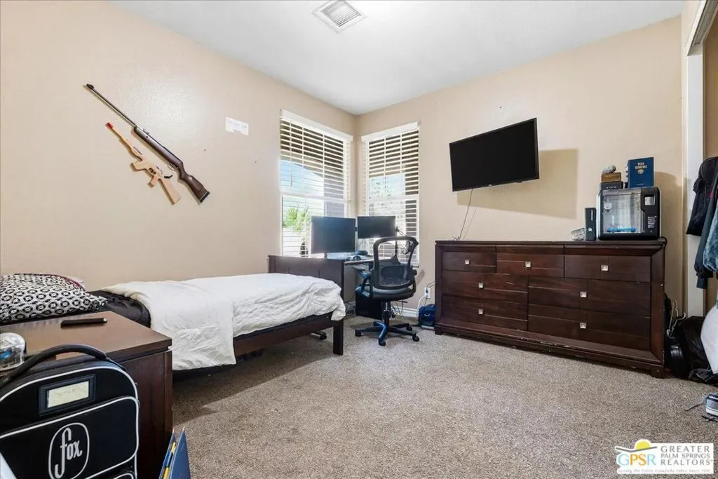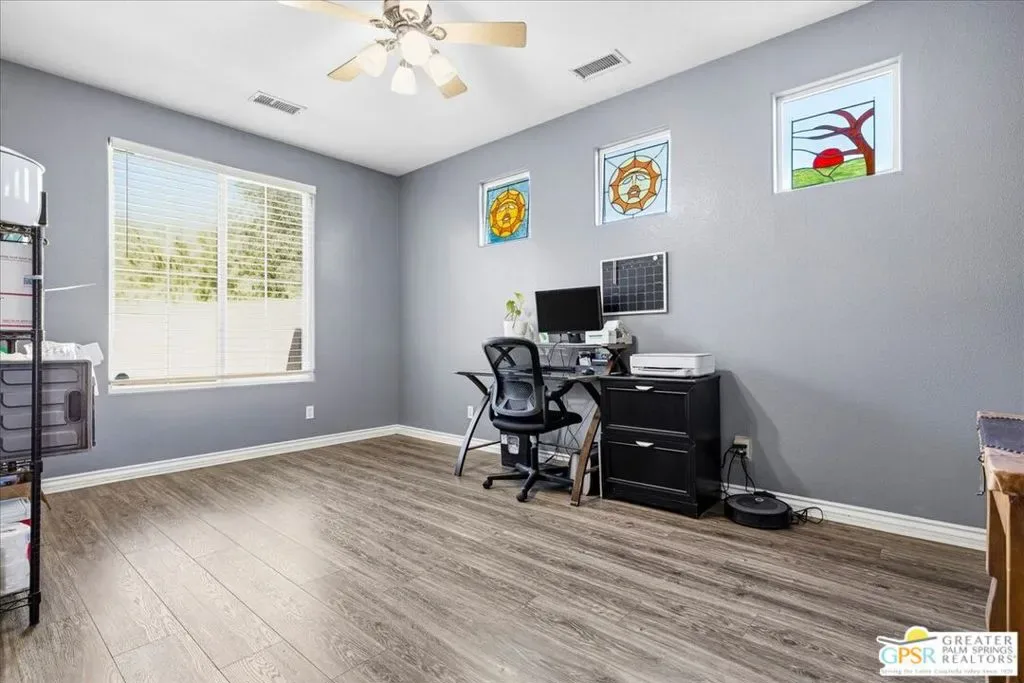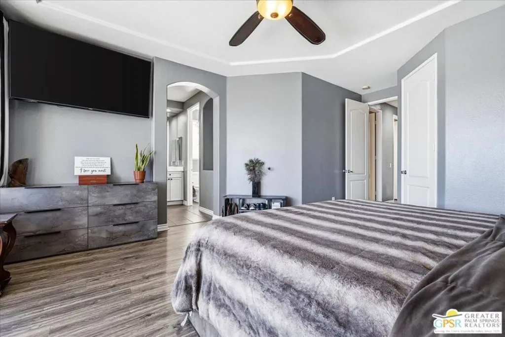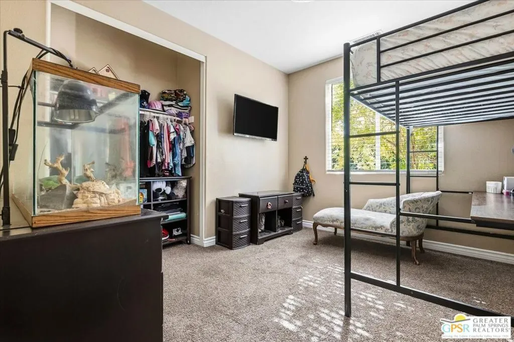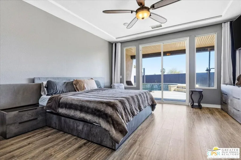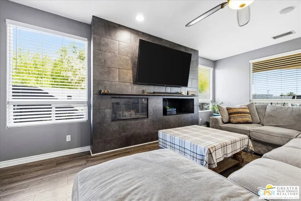 Welcome to this spacious 5-bedroom, 3 bathroom home tucked away at the end of a quiet cul-de-sac in Desert Hot Springs. Located within a gated community, this property offers the perfect blend of privacy, comfort, and scenic beauty, with stunning mountain views right from your backyard.Designed for both relaxation and entertaining, the home features a generous floor plan with ample living space for family and guests. The kitchen and bathrooms have been tastefully remodeled within the last two years, offering modern finishes and updated style throughout. The home also features a cozy gas fireplace, perfect for cooler desert evenings.Step outside to your private oasis complete with a sparkling pool featuring a tranquil waterfall, a fire pit, and a large backyard, ideal for enjoying sunny desert days and peaceful evenings under the stars.This home is equipped with energy-efficient solar panels along with two battery backup units, offering added peace of mind and potential cost savings. The air-conditioned garage adds versatility, perfect for a home gym, workshop, or additional comfort for your vehicles.Enjoy the benefits of a low monthly HOA fee while being conveniently located near local schools and amenities. The cul-de-sac location provides added tranquility with minimal traffic, making it a perfect retreat.Whether you’re looking for a primary residence, vacation home, or investment opportunity, this property delivers on space, efficiency, and lifestyle.Don’t miss your chance to own a slice of desert paradise. Sale is contingent upon upon sellers purchase of replacement home.