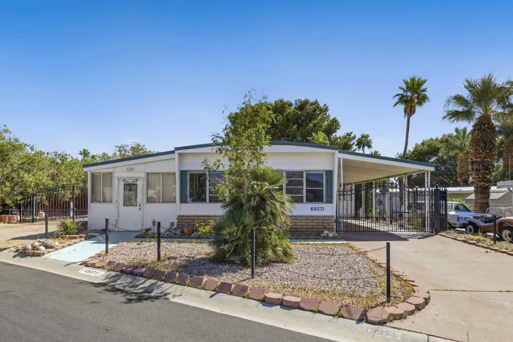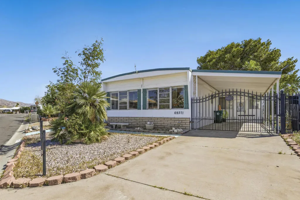 Welcome to 69371 Parkside Drive, a great opportunity to enjoy relaxed desert living in the active 55+ golf community of Desert Crest Country Club. This charming manufactured home offers comfortable living in a peaceful setting surrounded by beautiful desert and mountain views. Inside, the home offers a comfortable living and dining area with a practical layout designed for easy everyday living. Large windows bring in plenty of natural light, creating a warm and inviting atmosphere throughout the home. Step outside and enjoy the private outdoor areas–perfect for morning coffee, relaxing in the shade, or entertaining friends while taking in the quiet desert surroundings. The property also offers covered parking and additional outdoor space that provides flexibility for storage, hobbies, or simply enjoying the outdoors. Residents of Desert Crest Country Club enjoy an active and friendly lifestyle with amenities that include a 9-hole par-3 golf course, natural hot mineral water pool and spa, clubhouse, fitness area, shuffleboard courts, and a full calendar of social activities. One of the biggest benefits of this community is that you own the land with no space rent, all while enjoying a low monthly HOA. Conveniently located just a short drive from Palm Springs, this home offers easy access to shopping, dining, entertainment, and everything the Coachella Valley has to offer while still maintaining the quiet charm of the Sky Valley area. Whether you’re looking for a full-time residence, seasonal retreat, or an affordable desert getaway, this home is a wonderful opportunity to enjoy the relaxed lifestyle and community atmosphere that Desert Crest is known for.