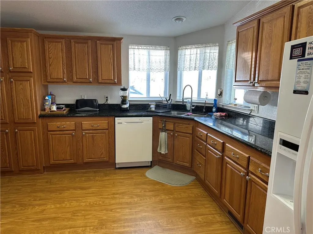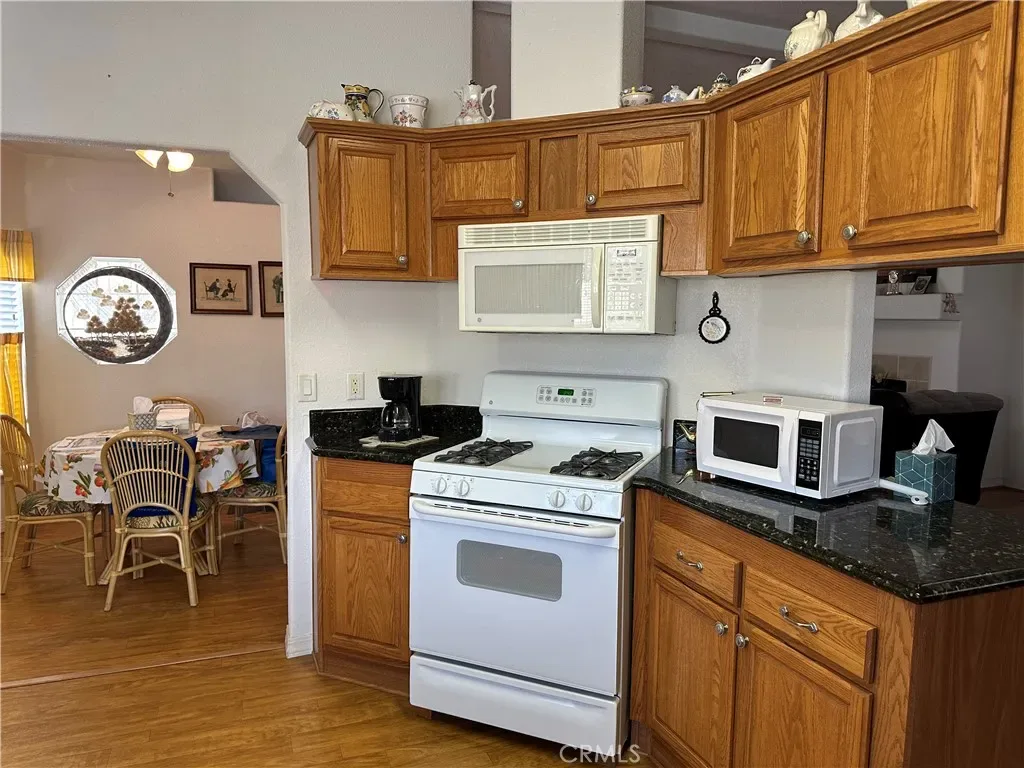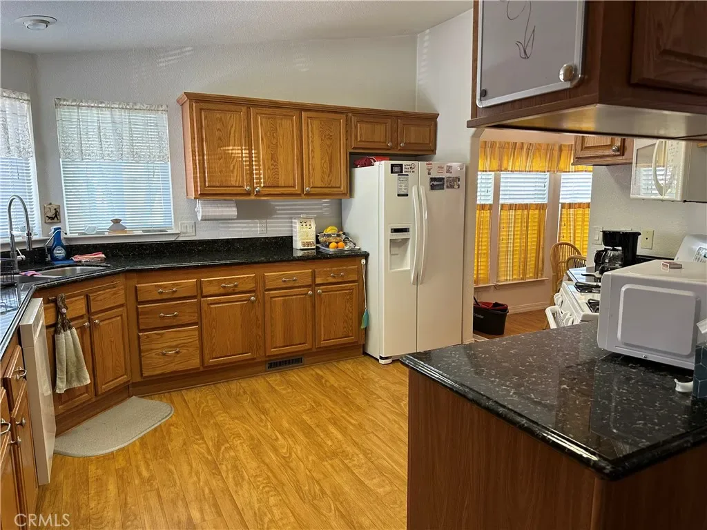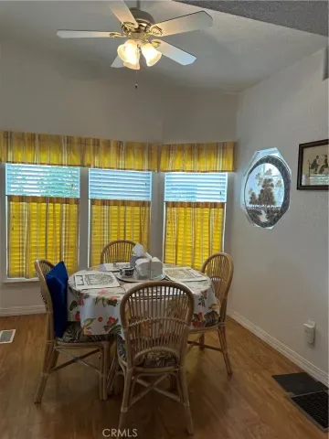 A Charming 2 Bedroom, 2 Bathroom home, with Living Room, Family room, Dining room, and a Breakfast Nook. Features include; Vinyl Flooring, Fireplace, Evaporative Cooler and HVAC, Ceiling Fans, Drywall throughout, Cathedral Ceilings, Tube Skylight (Guest Bath), walk in closet(s) in Master BDR, overhead Microwave, Storage galore with numerous Kitchen Cabinets, and a Refrigerator, Washer and Dryer that stays!