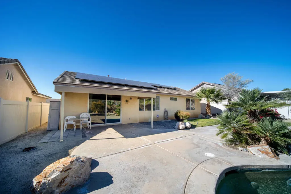 Welcome to 11788 Mountain Hawk Ln! A stunning desert retreat located inside the gated Eagle Point Community. This beautifully designed home offers the perfect blend of comfort, space, and efficiency–ideal for full-time living or your second home.Featuring 3 spacious bedrooms plus a HUGE flex room, this versatile layout easily adapts to your needs–whether you envision a home office, gym, media room, or guest suite. The heart of the home showcases a bright, open kitchen equipped with Brand-New stainless steel appliances, perfect for both everyday living and entertaining.Step outside to your private pool, where you can relax, unwind, and enjoy the desert sunshine year-round. Adding even more value and peace of mind, the home includes OWNED SOLAR, providing energy efficiency and monthly savings!Situated within a secure, gated community, Eagle Point offers privacy, low monthly HOA, while remaining conveniently close to shopping, dining, and easy access to Palm Springs and surrounding cities.This home checks all the boxes–space, upgrades, solar, pool, and location. Don’t miss the opportunity to own a move-in-ready property that truly delivers the desert lifestyle buyers are looking for!