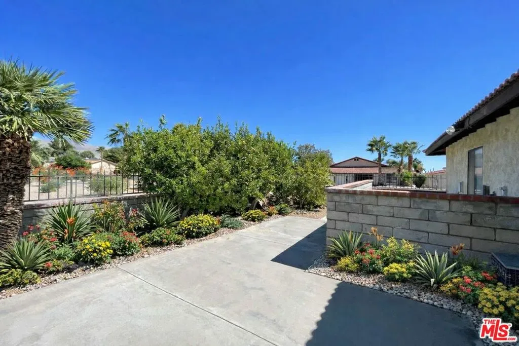 Resort-style living awaits in this beautifully upgraded single-story home, ideally situated on a prime CORNER LOT in Mission Lakes Country Club with MOUNTAIN VIEWS and close proximity to the GOLF COURSE. Just minutes from the clubhouse and a short drive to Palm Springs, this residence offers a seamless blend of luxury, comfort, and convenience. The open, airy floor plan features vaulted ceilings, a stylish built-in bar, and effortless flow into a sleek kitchen with stainless steel appliances, perfect for everyday living and entertaining. The spacious primary suite is filled with natural light and includes two walk-in closets and a luxurious en-suite bath. The spa-inspired bathroom showcases an expansive steam shower with three shower heads, including rain, wall, and hand-held options, along with dual seating for added comfort. A large double vanity with generous storage and elegant Carrara marble countertops completes the space. Two additional bedrooms provide flexibility and comfort, while the secondary bath features a Jacuzzi tub for relaxing. Outside, enjoy a private desert retreat with a sparkling pool, Jacuzzi, mature lemon trees, and peaceful mountain and golf course surroundings. Community amenities include golf, dining, fitness center, pools, spa, and guest hotel. Fireplace is decorative only.