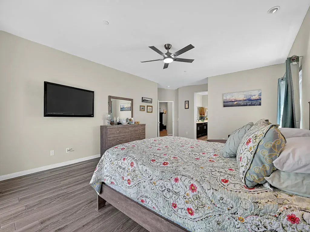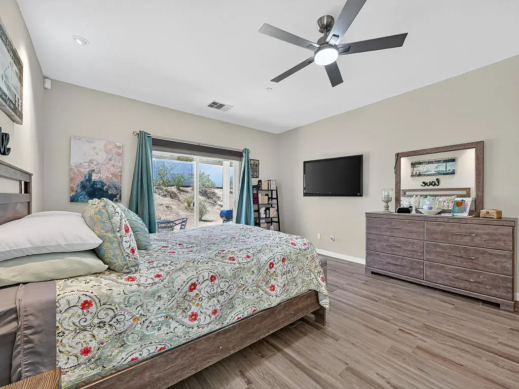 LOW INTEREST ASSUMABLE LOAN at 3.125% option on this 2018 custom built home in gated community. Golf access at Mission Lakes Country Club, Over $38,000 in BUILDER UPGRADES. 6’x36′ ceramic tile flooring throughout, all grey color tile. Large bedrooms, hallways and Great room!Built-in wine refrigerator and pot filler over stove in kitchen. Custom kitchen cabinets with back lighting and upgraded counter tops.Shows like a model home. Easy access with highly sought after floor plan.Original Owners are open to participating in buyer non-recurring closing costs.Must see to appreciate! Current price correction!