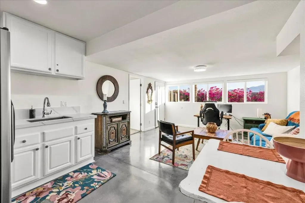 Now offered at $529,000, start living your dream today! A private desert playground set on nearly half an acre awaits. This fully refreshed move-in ready retreat is ready for you to enjoy from day one. The showpiece is the saltwater pool and spa, surrounded by unobstructed San Jacinto and San Gorgonio Mountain views; perfect for sun-soaked afternoons, golden-hour swims, and starlit dips. Designed for entertaining, the backyard features an outdoor kitchen for sunset dinners, an outdoor bathroom with shower, poolside cabanas, a bocce ball court, and a glowing fire pit for gatherings that last late into the evening. Two RV parking areas, one with full hookups, add flexibility and rare functionality. Inside, an open and light-filled layout offers generous living spaces, while the private casita with its own entrance and parking is ideal for guests, extended family, a private retreat, or rental income. With extensive updates, owned solar, resort-style amenities, and a prime location near Palm Springs dining, shopping, world-class golf, resorts, and wellness destinations, this is not a home you will want to miss!