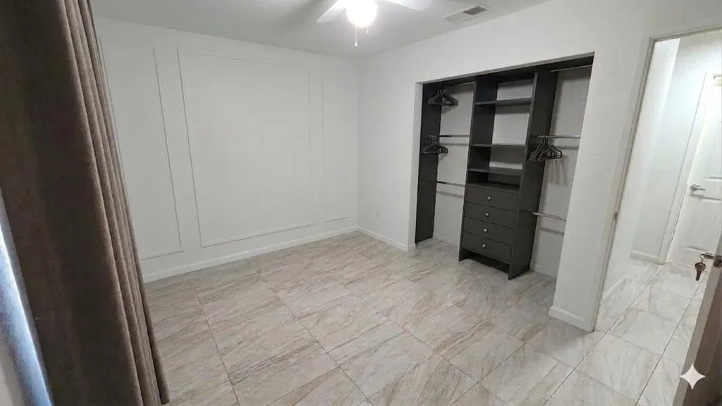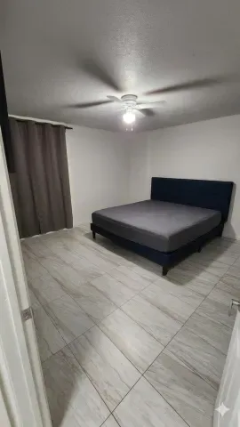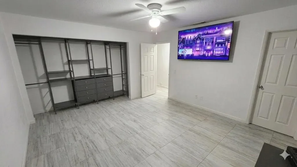 Beautifully updated home offering a perfect blend of modern finishes and comfortable living. This property features a spacious layout with upgraded tile flooring throughout, providing both style and easy maintenance.The remodeled bathroom showcases a sleek walk-in shower with custom tile work, contemporary vanity, and updated fixtures. The generously sized bedroom offers ample space and natural light, complemented by clean finishes and neutral tones.Step outside to a private backyard retreat featuring a large covered patio–perfect for entertaining or relaxing year-round. The yard includes a lush grass area, mature landscaping, and additional space with potential for customization, expansion, or outdoor projects.This home is ideal for those seeking move-in ready convenience with functional indoor-outdoor living.