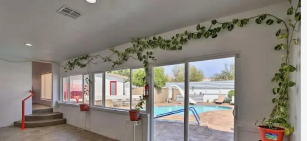 A RARE OPPORTUNITY to own a spacious Mid-Century Modern-inspired desert retreat just minutes from Palm Springs, set on an expansive 13,068 sq ft lot! UNA OPORTUNIDAD UNICA de adquirir un amplio refugio en el desierto con inspiracion Mid-Century Modern, ubicado a solo minutos de Palm Springs y situado en un amplio terreno de 13,060 pies cuadrados!!Professional photos coming soon. Stay tuned for updated images showcasing this beautiful property!! This beautifully designed 1,954 s.f. home offers 3 bedrooms and 3 bathrooms, with each bedroom featuring ample space, providing comfort, privacy, and flexibility for a variety of living arrangements.The home showcases Mid-Century Modern and Contemporary Desert design elements, including exposed beam ceilings, polished concrete flooring, and an open-concept layout that creates a seamless indoor-outdoor living experience. Large windows fill the home with natural light while offering views of the inviting backyard.The spacious kitchen features stainless steel appliances, gas range, custom tile backsplash, and abundant cabinetry, making it ideal for everyday living and entertaining.Step outside to a resort-style backyard complete with a private swimming pool, fun pool slide, expansive patio areas, and beautiful mountain views–perfect for relaxing or hosting gatherings. The gated front entrance and oversized driveway provide privacy and ample parking.With ADU potential and a layout that offers incredible versatility, this property presents endless possibilities–whether as a primary residence, vacation retreat, income property, or short-term rental investment (previously operated as an Airbnb).Additional highlights include: Covered patio, Vaulted and exposed beam ceilings,Polished concrete and designer flooring, Desert landscaping, Expansive outdoor entertaining spaces, Abundant natural light throughout.Experience the charm of desert living with a distinctive Palm Springs vibe!!
