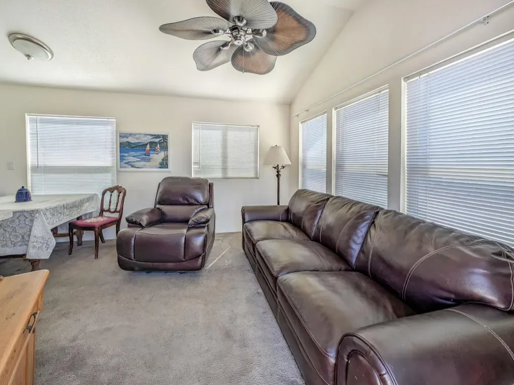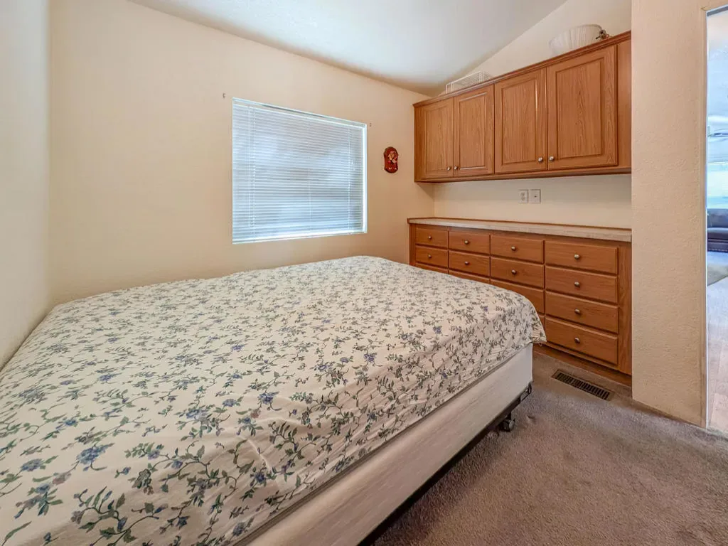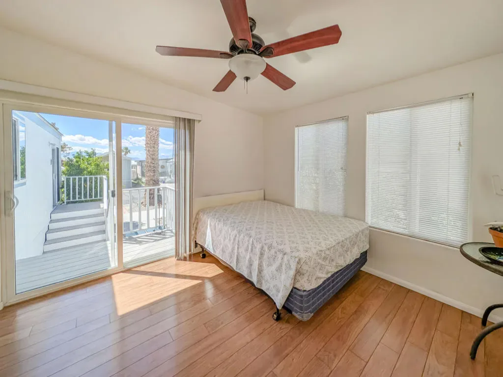 Located near the Clubhouse and central to Caliente Springs Resorts many amenities and activities, this premier 55+ gated community offers plenty, including mineral hot spring pools and spas, eight pickleball courts, tennis courts, a nine-hole golf course, driving range, fantastic desert hiking, laundry facilities, a library, gym, and much more. The property features a well-designed 2008 Laurel Creek Park Model home with approximately 550 sq. ft., two bedrooms, and one bathroom. This cozy getaway cottage is filled with natural light, has double-pane windows, great views, and a solid stick-built California room. You’ll also enjoy mature landscaping and a large, paved driveway suitable for two cars. Ready for you to move in and personalize, this home provides a wonderful canvas for your unique touch. Come discover your happy place and make lasting friendships–please note that the lot is not owned; space rent is $673.