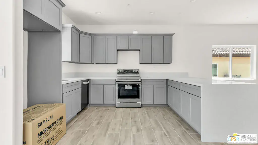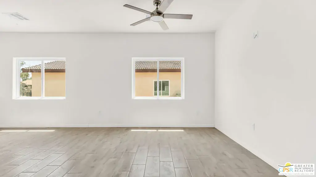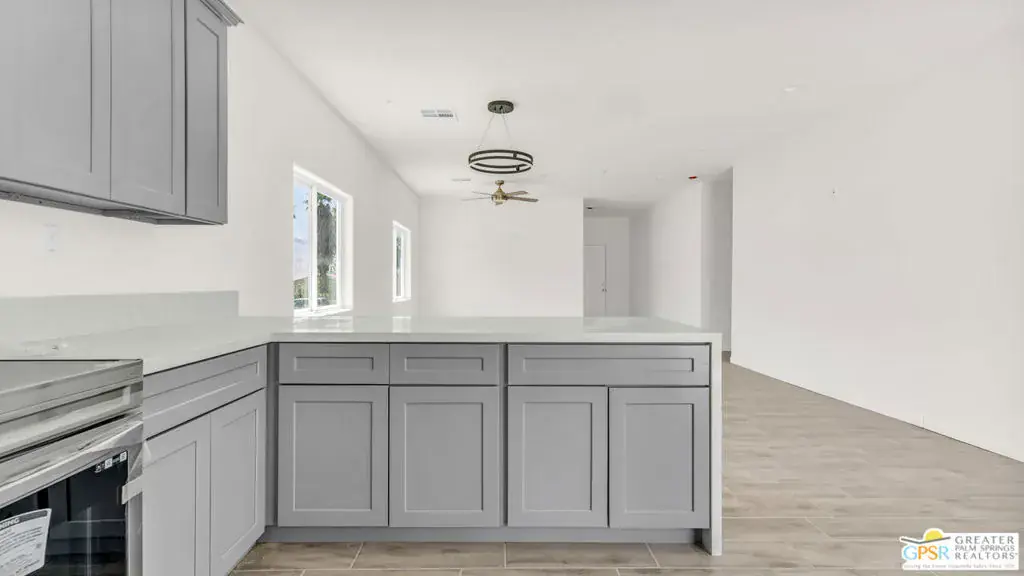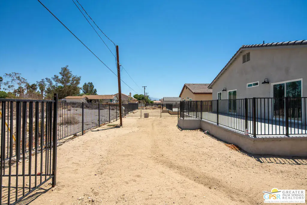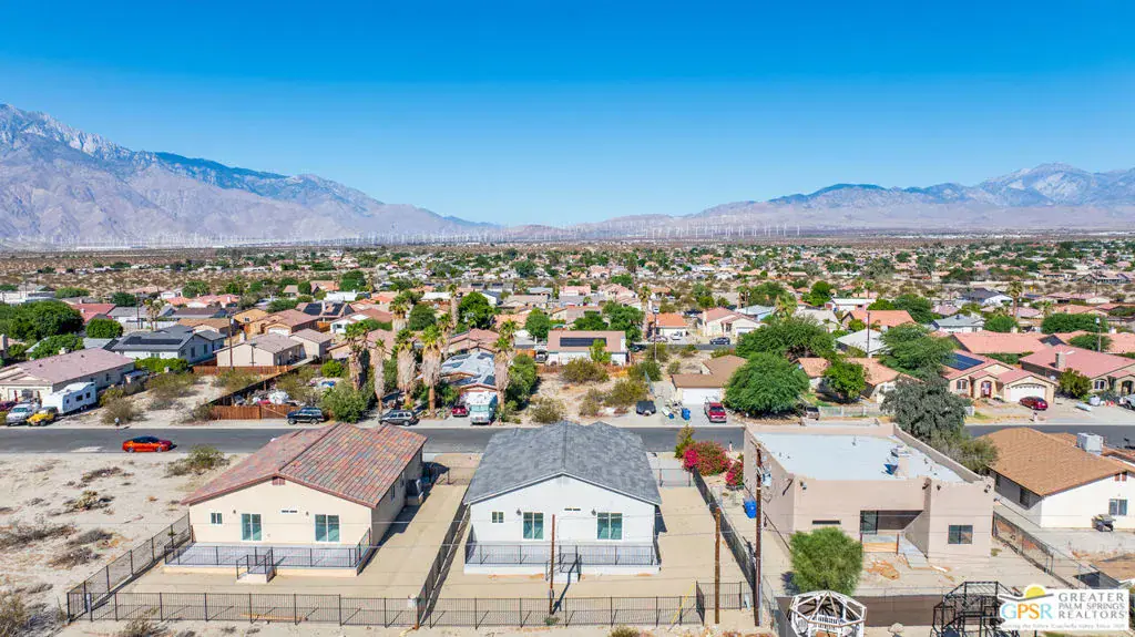 New Construction with No HOA and Solar! This single-story residence features an open-concept layout with stylish upgrades that feature tile flooring that flows seamlessly throughout the living spaces. Clean lines and modern finishes create a sleek, inviting atmosphere. The thoughtfully designed kitchen with stainless steel appliances , waterfall granite counter top opens to the living and dining areas, making it ideal for entertaining or relaxing at home. Private guest quarters, offering flexibility for visiting family, friends, or even a home office. With its combination of contemporary elegance, practical design, and the ease of single-level living, this home is move-in ready and perfectly situated to enjoy everything Desert Hot Springs has to offer. Enjoy your mountain views while entertaining in your fenced back yard. Equipped with Central AC / Heat and Solar.