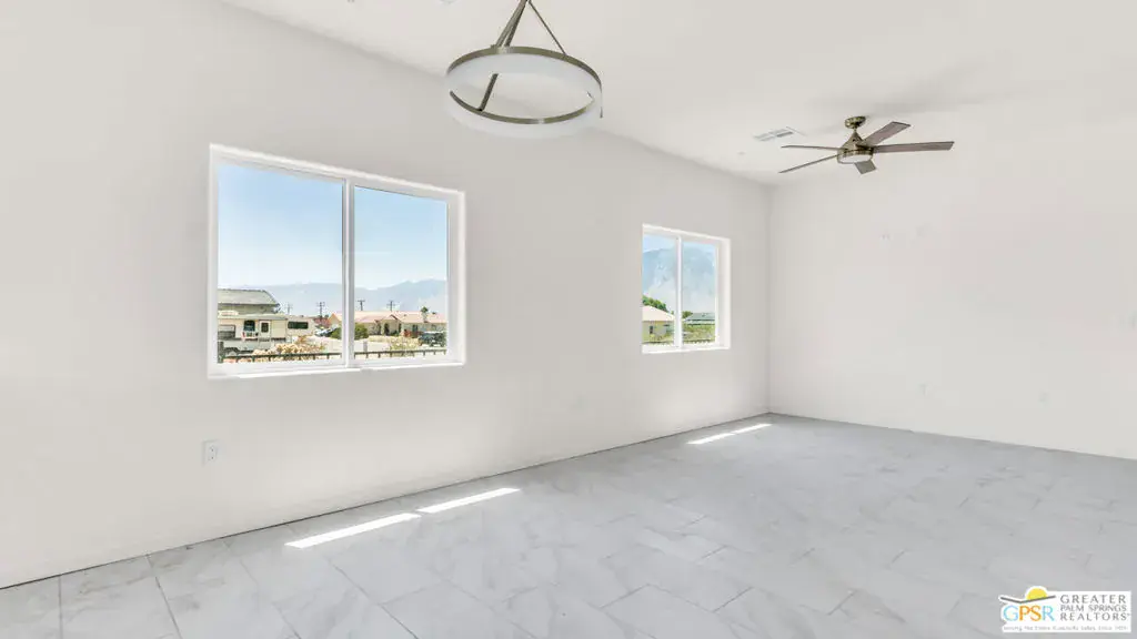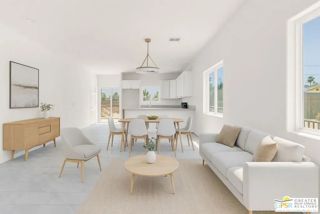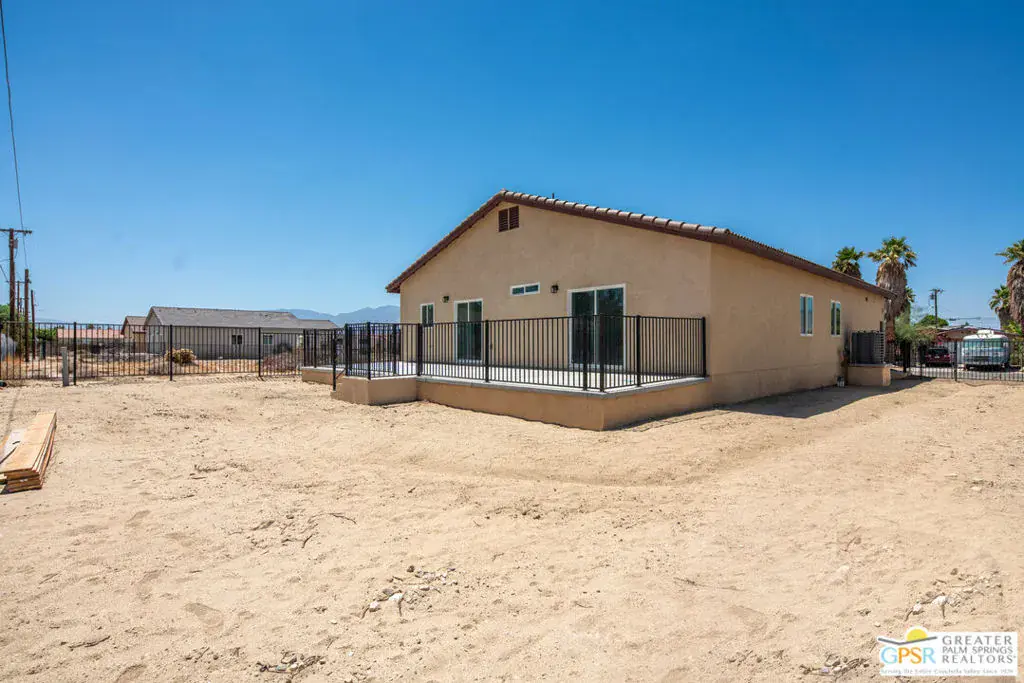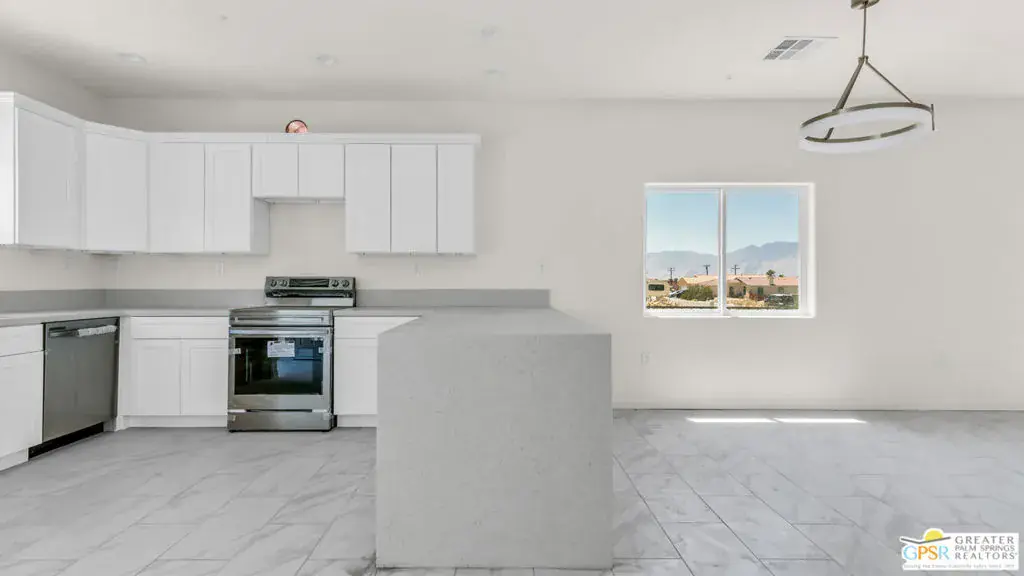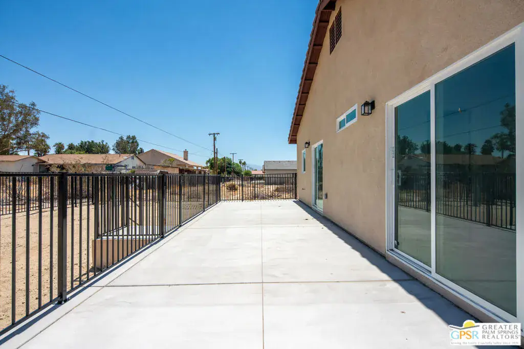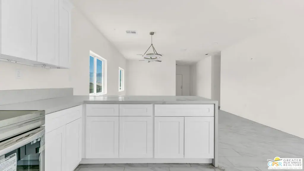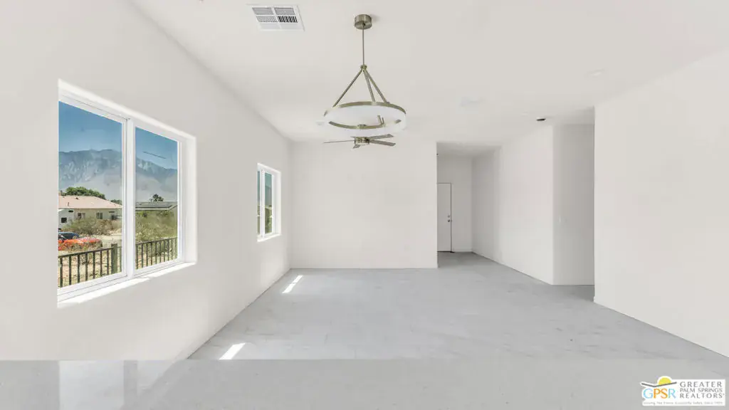 New Construction – No HOA with Solar. Single-story residence features an open-concept layout with stylish upgrades that feature tile flooring that flows seamlessly throughout the living spaces. Clean lines and modern finishes create a sleek, inviting atmosphere. The thoughtfully designed kitchen with stainless steel appliances , waterfall granite counter top opens to the living and dining areas, making it ideal for entertaining or relaxing at home. A special highlight of this property is the private guest quarters, offering flexibility for visiting family, friends, or even a home office. With its combination of contemporary elegance, practical design, and the ease of single-level living, this home is move-in ready and perfectly situated to enjoy everything Desert Hot Springs has to offer. Enjoy your mountain views while entertaining in your fenced back yard. Equipped with Central AC / Heat and Solar.