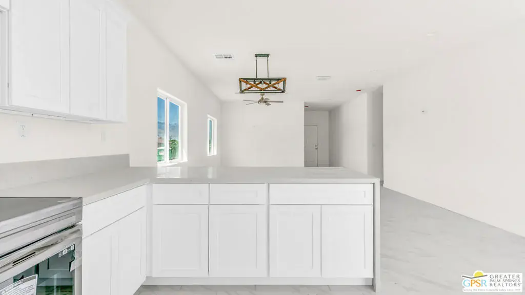 New Construction with No Hoa and Solar! This single-story residence features an open-concept layout with stylish upgrades that feature tile flooring that flows seamlessly throughout the living spaces. Clean lines and modern finishes create a sleek, inviting atmosphere. The thoughtfully designed kitchen with stainless steel appliances , waterfall granite counter top opens to the living and dining areas, making it ideal for entertaining or relaxing at home. Private guest quarters, offering flexibility for visiting family or even a home office. With its combination of contemporary elegance, practical design, and the ease of single-level living, this home is move-in ready and perfectly situated to enjoy everything Desert Hot Springs has to offer. Enjoy your mountain views while entertaining in your fenced back yard. Equipped with Central AC / Heat and Solar.