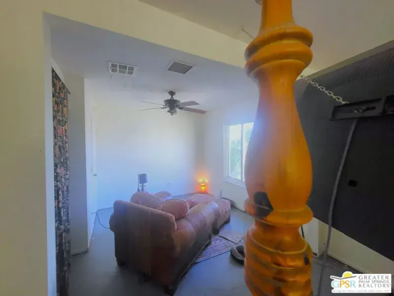 Embrace the potential of this rare Modern Mediterranean gem, a hard-to-find starter home or savvy investment opportunity positioned at a bargain value in the hills of Desert Hot Springs. This 1979-built three Bedroom and two Bath residence offers a solid foundation and 1,134 square feet of living space, perfectly suited for a creative owner ready to polish a diamond in the rough. The property’s most captivating feature is its elevated hillside location, providing “out-of-this-world” panoramic views of the Western Coachella Valley that are truly a once-in-a-lifetime find. From the moment you arrive, the home’s curb appeal shines through a massive front Yard adorned with mature trees, palms, and lush plantings. This space is a blank canvas waiting to be transformed into an expansive East-facing outdoor retreat. Practicality meets style with a spacious concrete driveway and an attached Garage providing ample parking. A charming, long-covered portico Porch leads you to the red front Entry Door, offering a shaded vantage point to enjoy the morning sun and desert breezes. Inside, the home opens into an expansive Living Room bathed in light from East-facing windows, featuring French Doors that lead to a private Southside patio. The layout flows seamlessly into a dedicated Dining Area designed for entertaining, which offers direct Slider Door access to the rear Yard. The adjacent Kitchen is impressively sized, boasting extensive counter space for meal preparation, a high-end natural gas cooktop with a grill plate, and included appliances such as the dishwasher and refrigerator. A clever pass-through window connects the Kitchen to the Living Area, ensuring the chef is always part of the conversation. The living quarters are thoughtfully secluded from the social areas for maximum privacy. The primary Bedroom Suite serves as a true retreat, featuring dual entry doors, a West-facing full-length window that invites the sunshine in, and an ensuite bath updated with dual sinks and a step-in shower with seating. Two additional Bedrooms offer unique character; the second features a decorative colonnaded nook perfect for a bed or specialized furniture, while the third offers a classic layout with bright South-facing windows. A recently remodeled guest Bath services these rooms with a granite vanity and a full-sized tub and shower. Efficiency is a hallmark of this property, which features a leased solar system complete with two backup batteries and an EV charging station in the Garage. To keep costs low during the desert summers, the home is equipped with both a ducted evaporative cooling system and a separate full HV/AC system. The garage also doubles as a functional space with built-in storage shelving and a dedicated laundry area. The true showstopper is the rear yard, where a combination of over-height concrete block walls and open chain-link fencing preserves a view that words cannot fully capture. From this high vantage point, you are treated to an all-encompassing vista stretching from Mount San Jacinto through the Banning Pass to the snow-capped peaks of Mount San Gorgonio. The yard is plenty large enough to accommodate a custom pool and spa, making it the ultimate destination for watching mountain sunsets or enjoying a quiet morning coffee. With just a touch of modern renovation, this solid desert cottage is ready to become your personal slice of heaven.