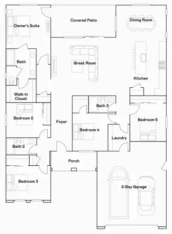 NEW CONSTRUCTION! This new single-level home is ready for modern lifestyles featuring 5 bedrooms. An inviting open-concept floorplan maximizes interior space and features convenient access to a covered patio for effortless entertaining and multitasking. Two bedrooms are situated off the main living area with access to a full bathroom, and two additional bedrooms with a full bathroom are tucked away to the side of the home, including the luxurious owner’s suite with a full bathroom and walk-in closet.
