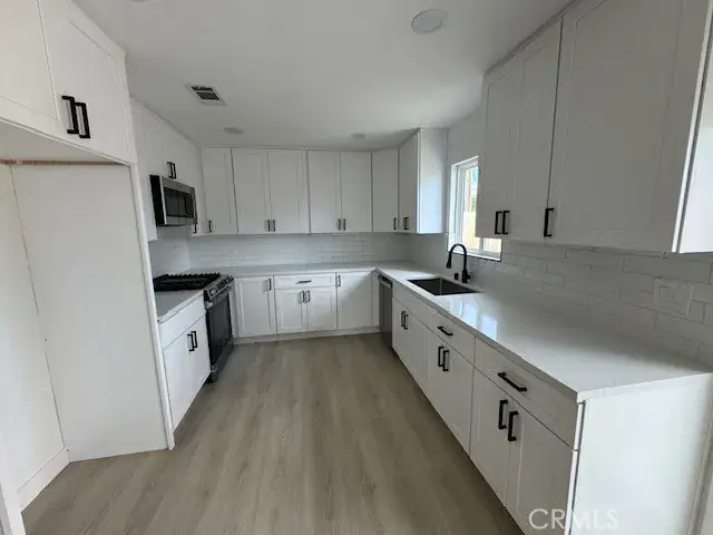 Completely Remodeled 3 bedroom 2 bathroom home, New Roof, New Kitchen, New remodeled bathrooms, New vanity cabinets in the bathrooms, New laminate flooring, New baseboards, New fencing, RV access, Large driveway, New interior paint, New exterior paint, New windows, New drought tolerant front yard. Laundry connections in the garage, New dishwasher, New microwave, New Range.
