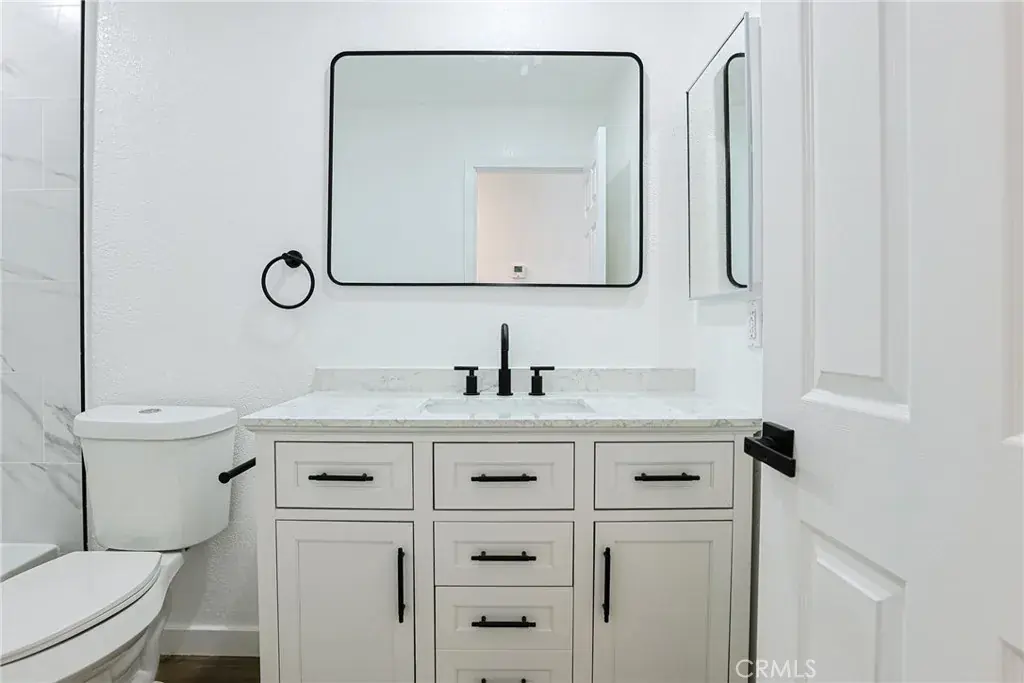 Bathrooms feature updated vanities with solid-surface countertops, modern fixtures, framed mirrors, and tiled shower surrounds. Bedrooms offer comfortable layouts with ceiling fans and neutral finishes.