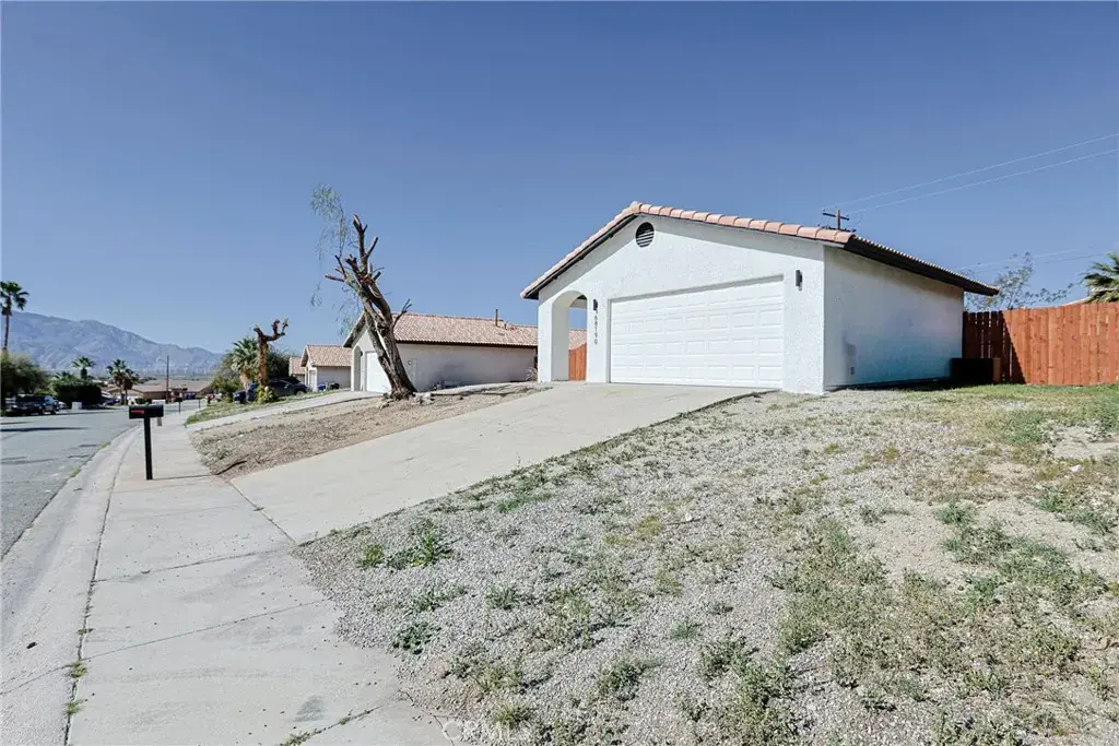 Exterior features include an attached two-car garage, extended driveway, and a fenced yard with space for outdoor use or future improvements. Conveniently located near local schools, shopping, dining, and with access to the greater Coachella Valley area.